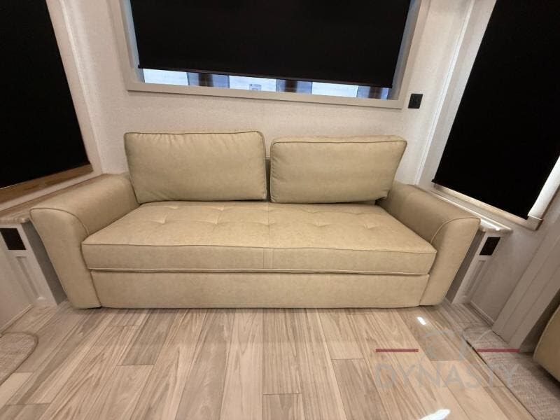 With each Sandpiper Destination Trailer by Forest River you will enjoy many luxurious features, such as crown molding over the kitchen cabinets, solid surface kitchen countertops, a memory foam mattress, plus so much more. The extra large picture windows throughout let natural light in and provide beautiful outdoor views, and each model includes three or more slides for added interior space. You'll find many exterior conveniences, like the porch light with an interior switch, the rain gutters with extra long drip spouts to prevent black streaking, and an electric awning with LED light strip, plus more! You will stay comfortable year around with dual 15,000 A/C units plus each model is constructed with an Underbelly Armor for better protection and insulation!