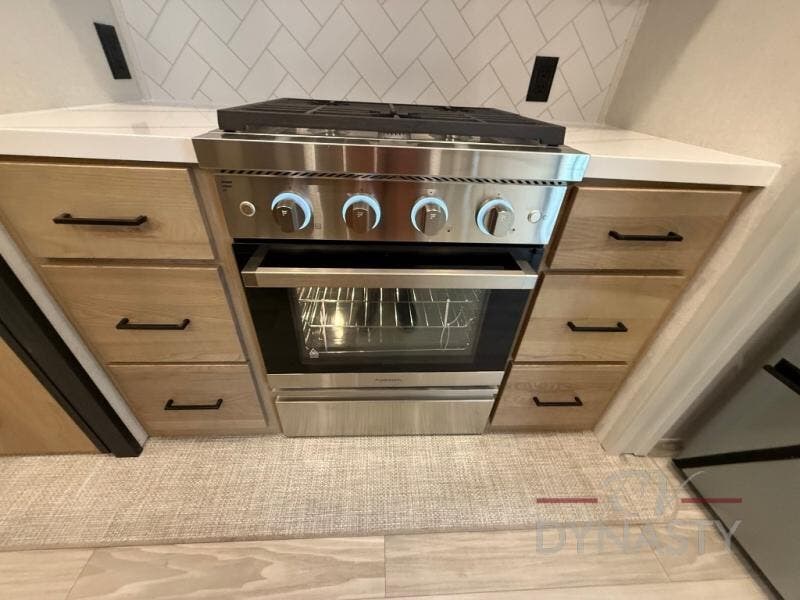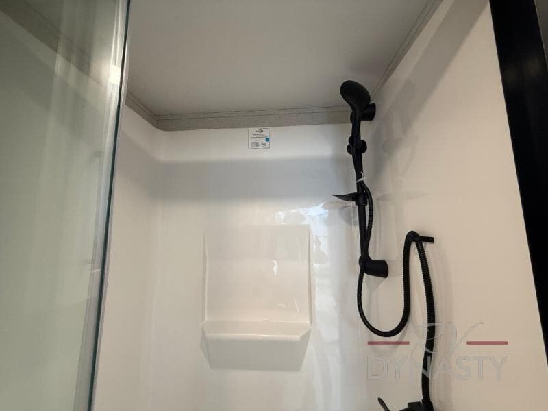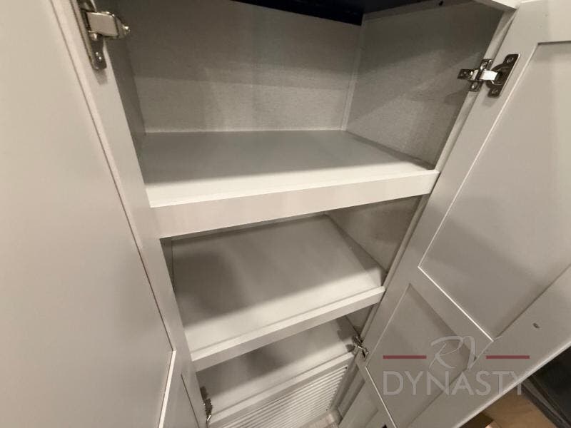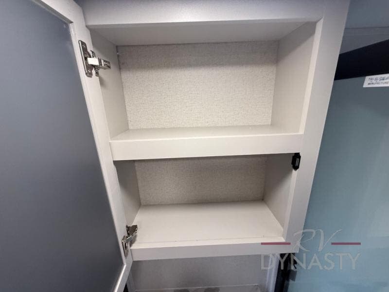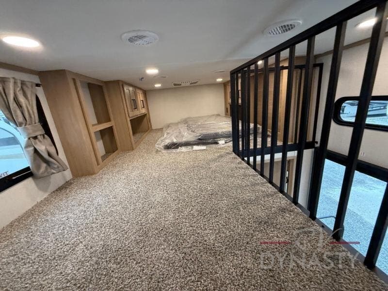 You won't believe the comfort and convenience found in this destination trailer. There are two private bedrooms; one up front with a queen bed slide out and storage space, and one in back with a queen bed slide out and a half bath! There is even washer and dryer prep here if you want to add those appliances and the second entry door is also found in this location so you can easily slip out in the morning. Above each of these rooms is a loft providing three total bunk mats for sleeping, storage cabinets, and TV prep if you want to add entertainment. Everyone can meet in the combined kitchen and living room that includes dual opposing slides, a 60" theater seating across from a 50" flat screen TV and fireplace, plus a free-standing table with chairs and a bench to dine at. The chef of your group will love the large kitchen island, Chef Collection three burner range, and a 16.2 cu. ft. refrigerator for food storage.