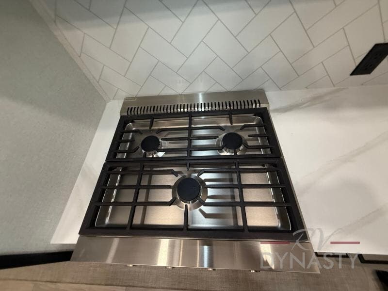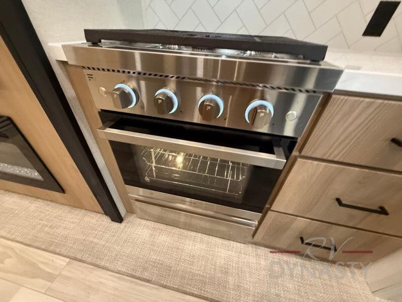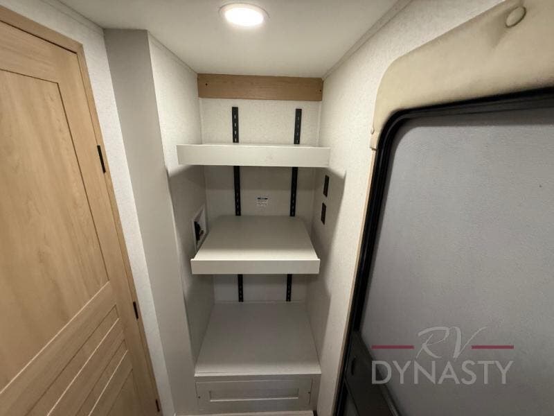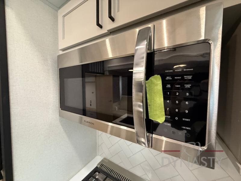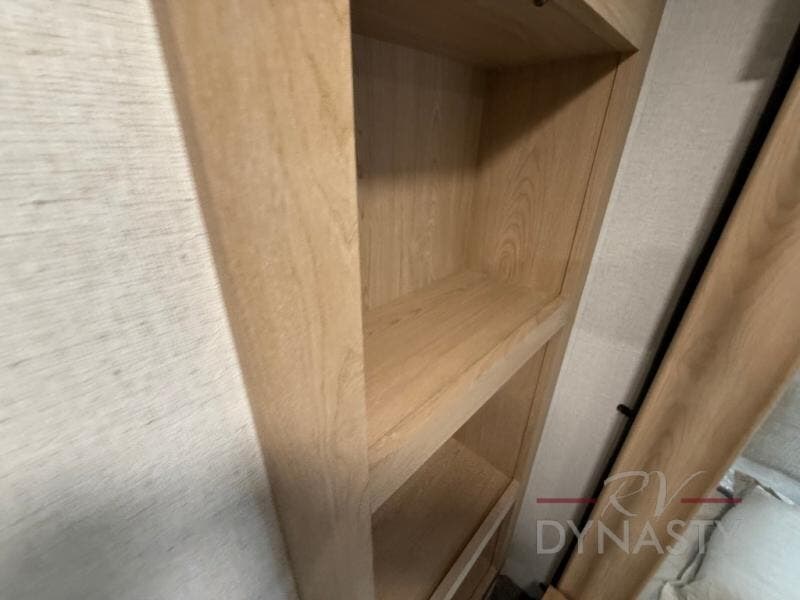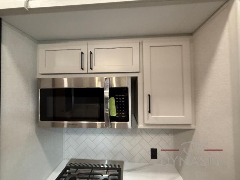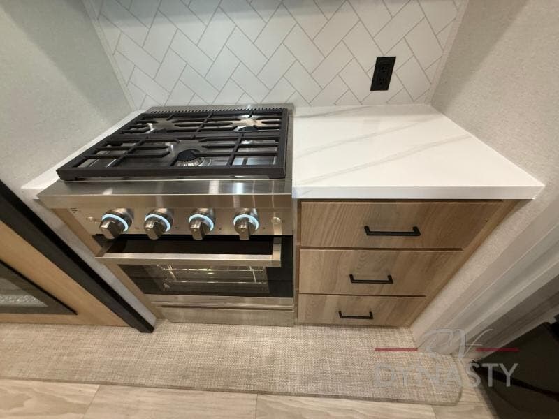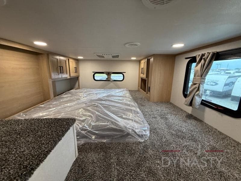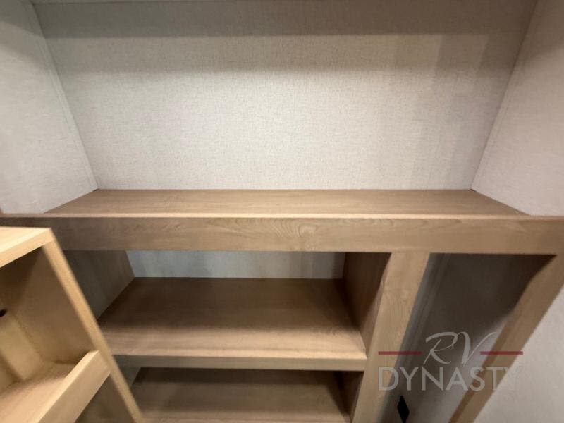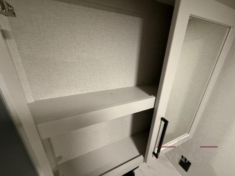 You won't believe the comfort and convenience found in this destination trailer. There are two private bedrooms; one up front with a queen bed slide out and storage space, and one in back with a queen bed slide out and a half bath! There is even washer and dryer prep here if you want to add those appliances and the second entry door is also found in this location so you can easily slip out in the morning. Above each of these rooms is a loft providing three total bunk mats for sleeping, storage cabinets, and TV prep if you want to add entertainment. Everyone can meet in the combined kitchen and living room that includes dual opposing slides, a 60" theater seating across from a 50" flat screen TV and fireplace, plus a free-standing table with chairs and a bench to dine at. The chef of your group will love the large kitchen island, Chef Collection three burner range, and a 16.2 cu. ft. refrigerator for food storage.