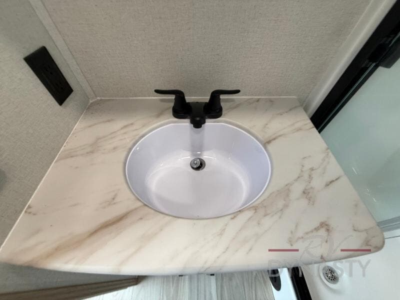 With each Sandpiper Destination Trailer by Forest River you will enjoy many luxurious features, such as crown molding over the kitchen cabinets, solid surface kitchen countertops, a memory foam mattress, plus so much more. The extra large picture windows throughout let natural light in and provide beautiful outdoor views, and each model includes three or more slides for added interior space. You'll find many exterior conveniences, like the porch light with an interior switch, the rain gutters with extra long drip spouts to prevent black streaking, and an electric awning with LED light strip, plus more! You will stay comfortable year around with dual 15,000 A/C units plus each model is constructed with an Underbelly Armor for better protection and insulation!