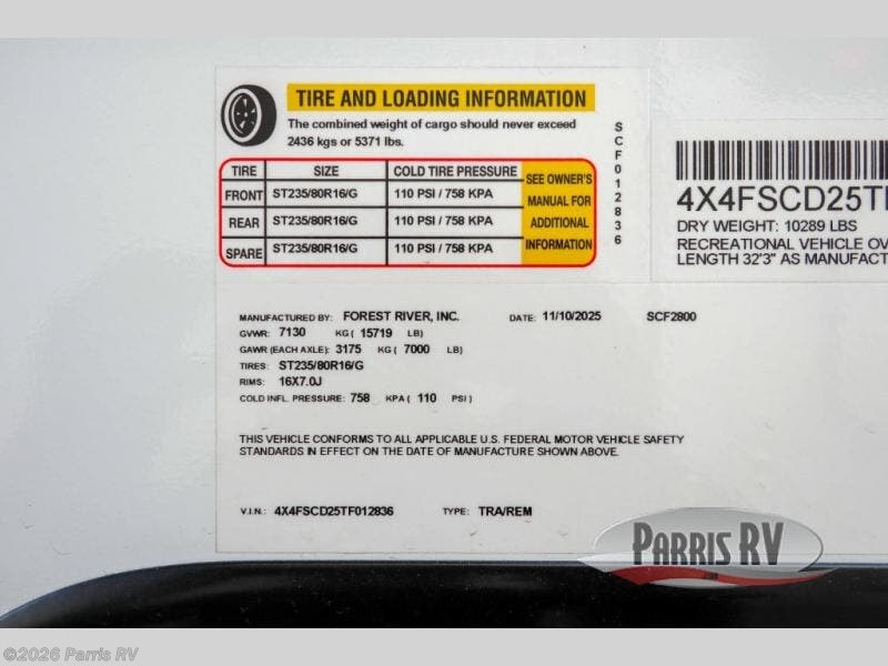- VIN4X4FSCD25TF012836