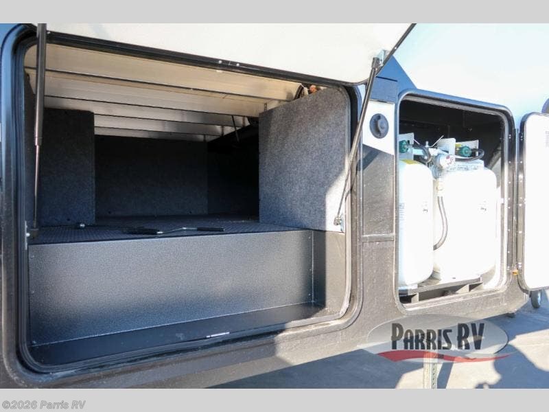 Enjoy flexible living and affordable costs with the Sandstorm fifth wheel and travel trailer toy haulers! The versatile garage areas can be used for both toy storage plus seating and sleeping spaces. Each model includes a ramp door with patio cables, a power tongue jack, and a 40-gallon fuel station to keep your bikes filled and ready for adventure. The residential king bed is sure to bring comfort each day, along with a tankless water heater so everyone can clean up after trail riding. There are a variety of floorplans to choose from, including GX models with added features for those who want to take their excursions up a notch!