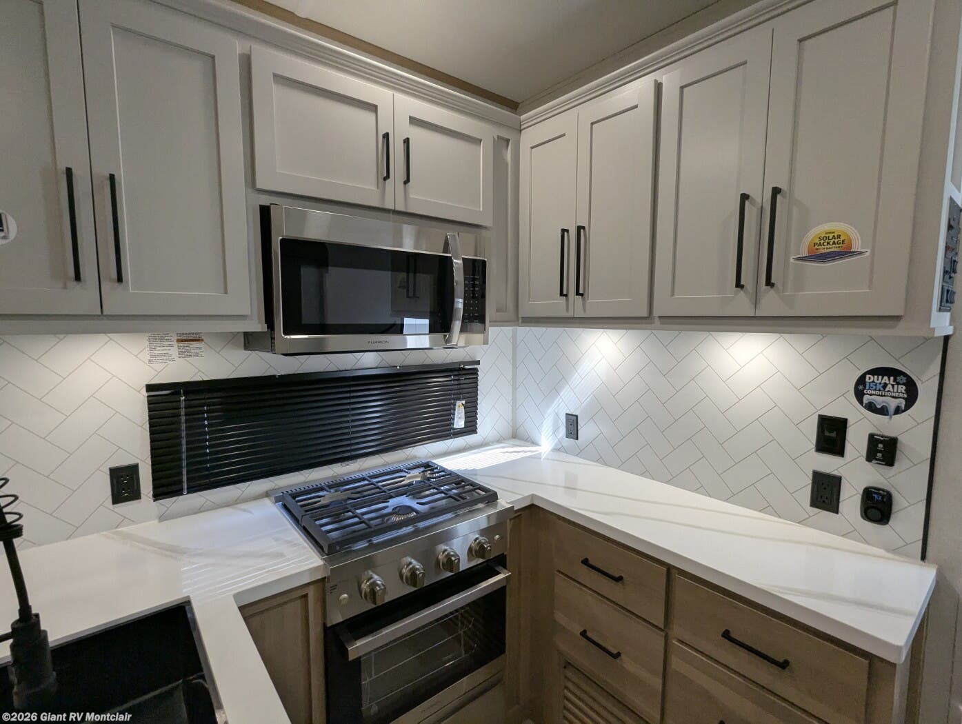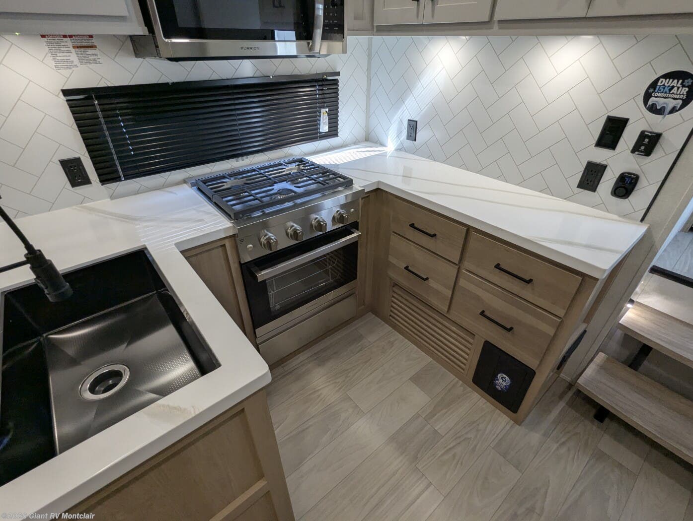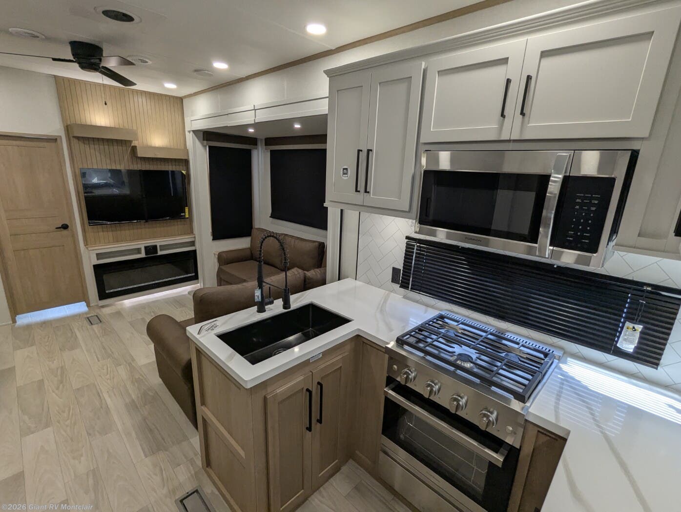 - Modern Amenities: Features air conditioning, a kitchen with walk-in pantry, 12V refrigerator, convection microwave, and a residential-style bathroom.