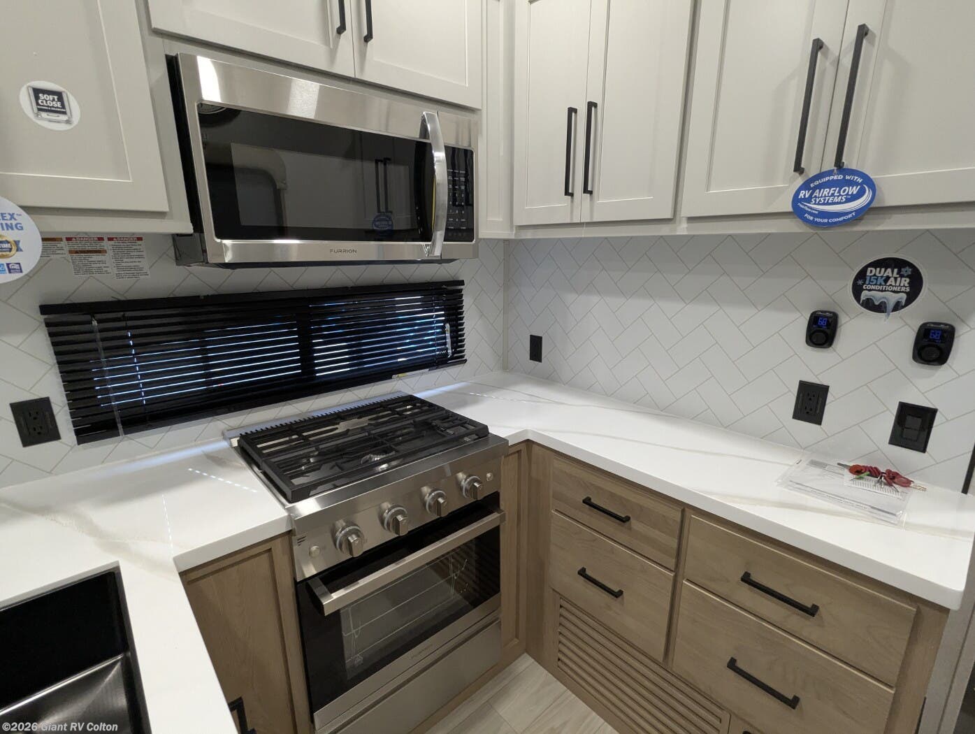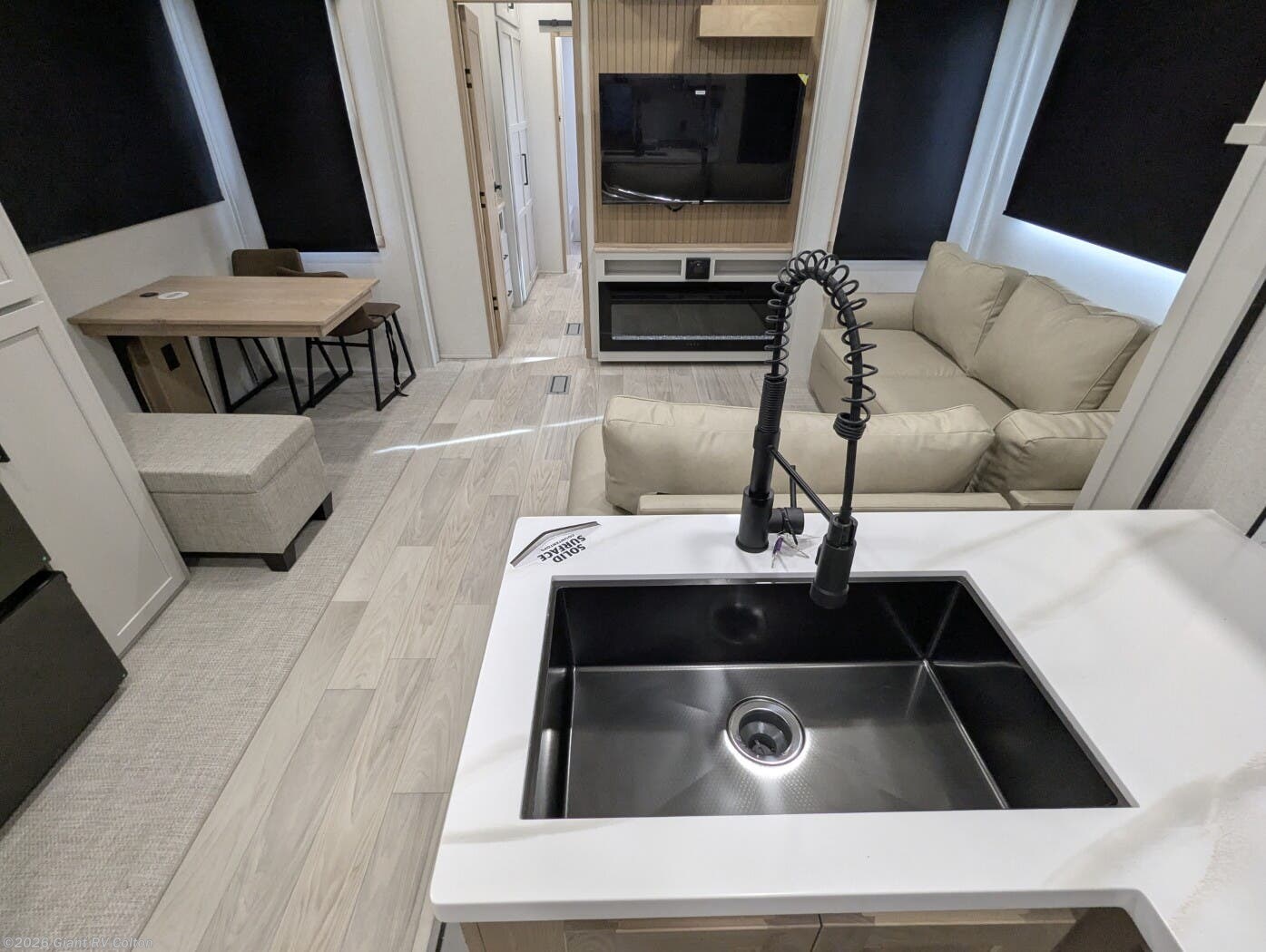 - Modern Amenities: Features air conditioning, a kitchen with walk-in pantry, 12V refrigerator, convection microwave, and a residential-style bathroom.