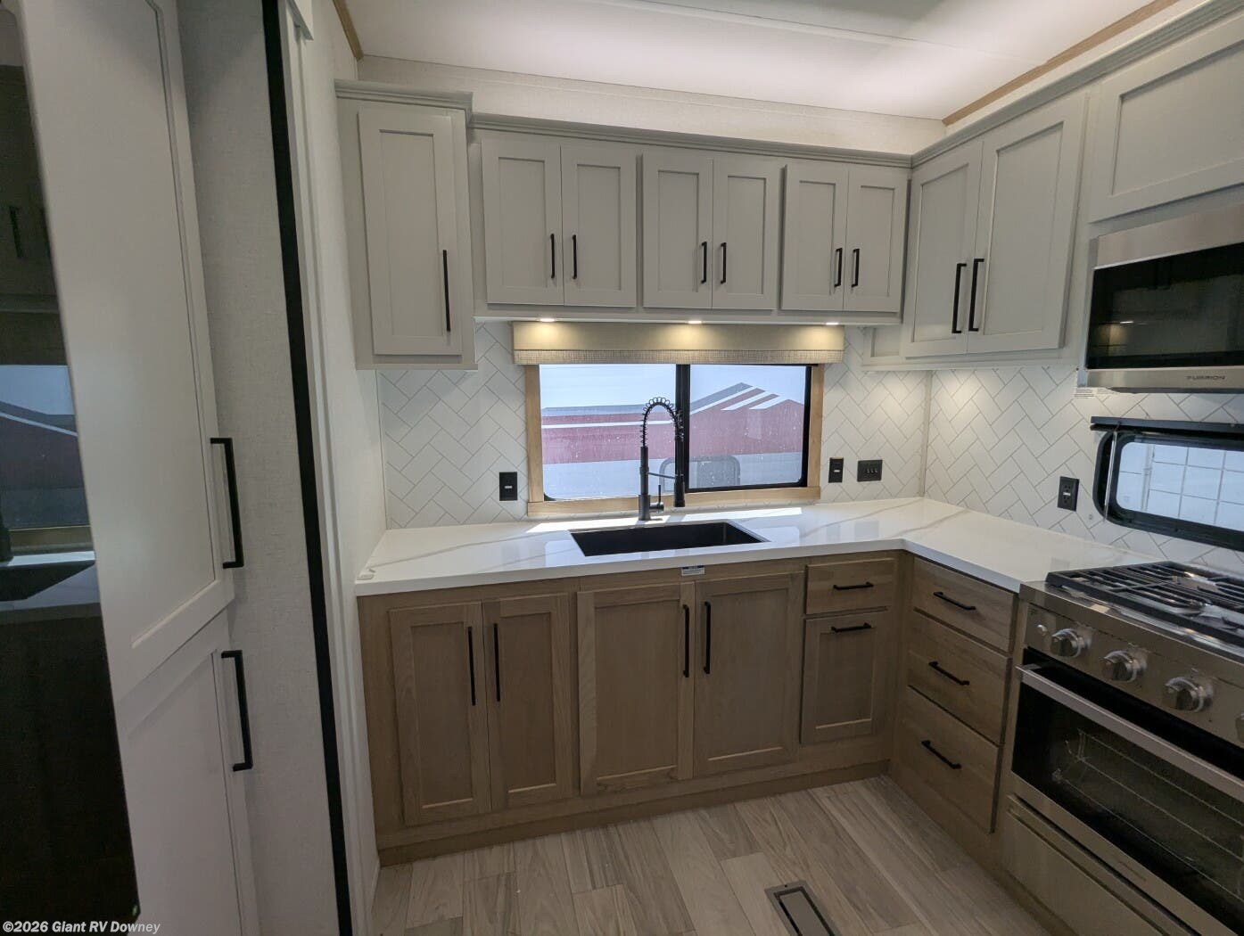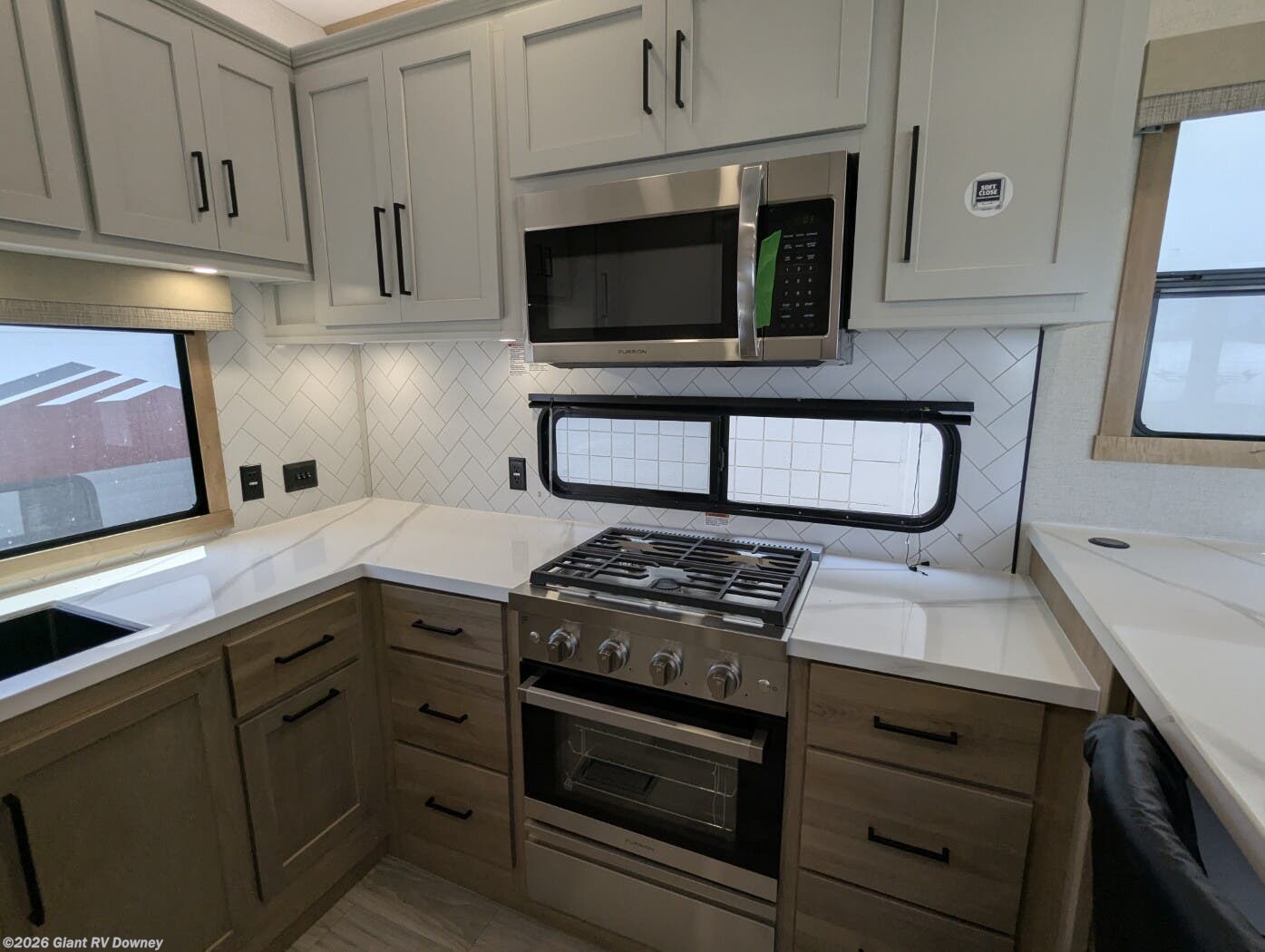 - Rear Kitchen: 16.8 cu. ft. fridge, cooktop for RV adventure