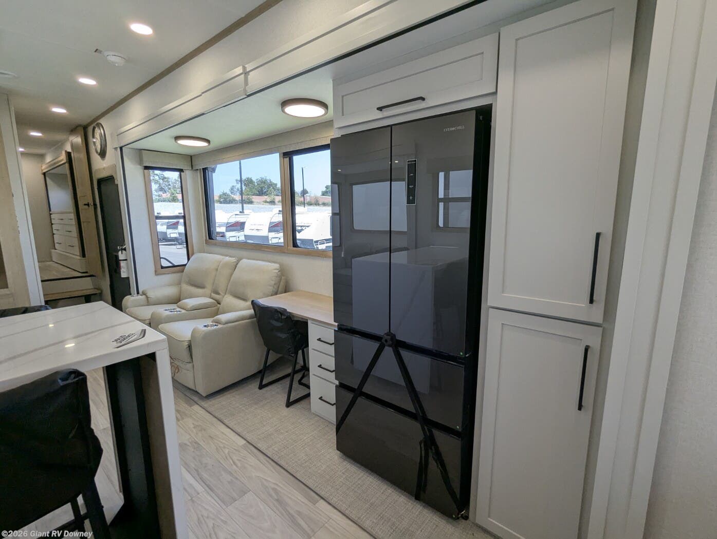 - Central Living Area: Theater seating slide for California RV