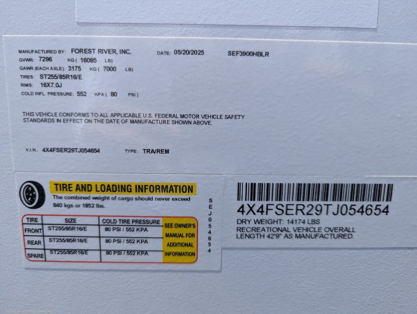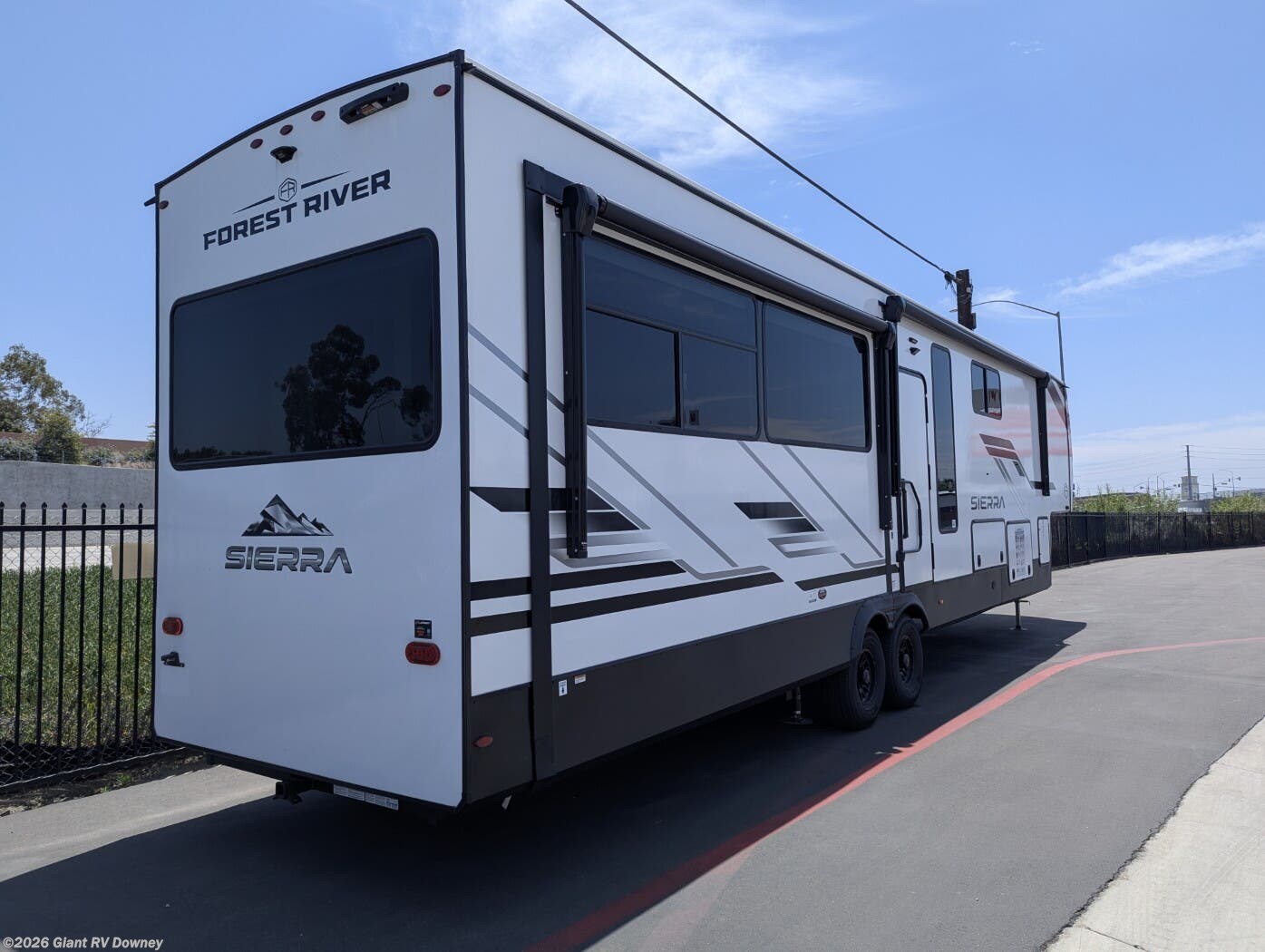 Get ready for a family getaway with the 2025 Forest River Sierra 3900HBLR fifth wheel at Giant RV in California! Ideal for full-time RVing, this RV features three slide-outs for spacious living, a rear entertainment center with a 50” LED TV for cozy movie nights, and a front king bedroom for restful sleep, sleeping up to 3. The chef’s kitchen boasts a 12V fridge to keep groceries fresh, a 3-burner cooktop for gourmet meals, and a microwave for quick snacks. Enjoy dual 12’ & 18’ power awnings for shaded relaxation. Equipped with dual 15,000 BTU A/Cs for cool comfort, a 35,000 BTU furnace for warmth, and 200W solar for off-grid power.
