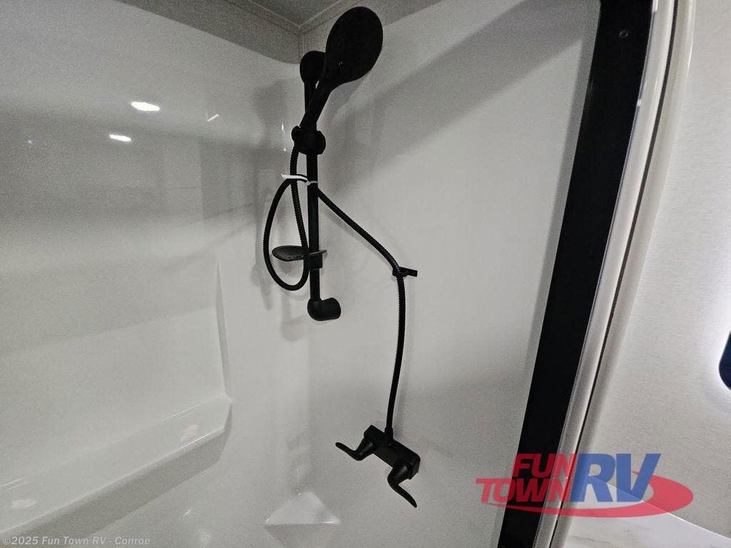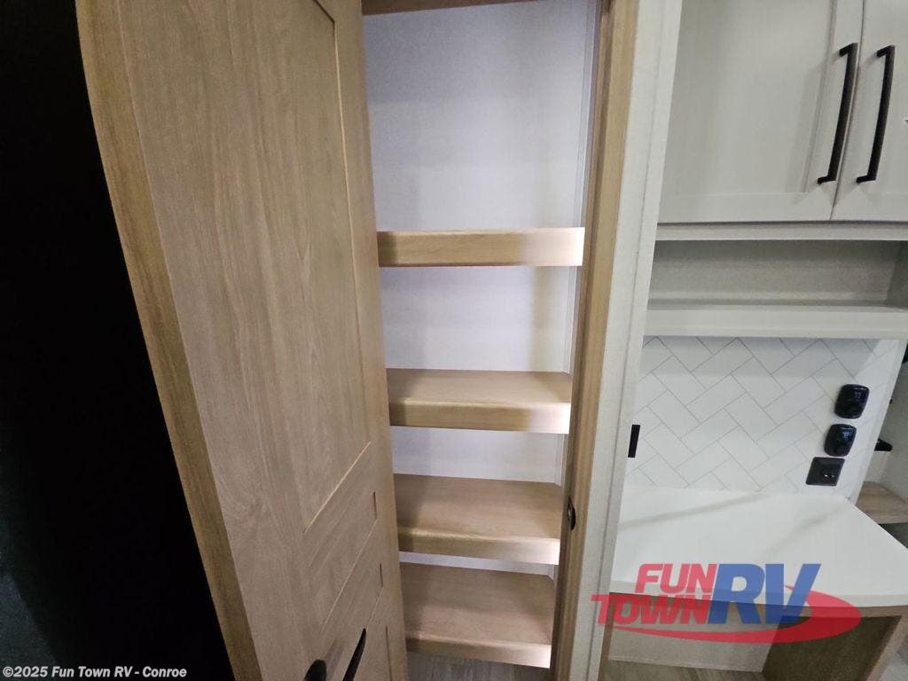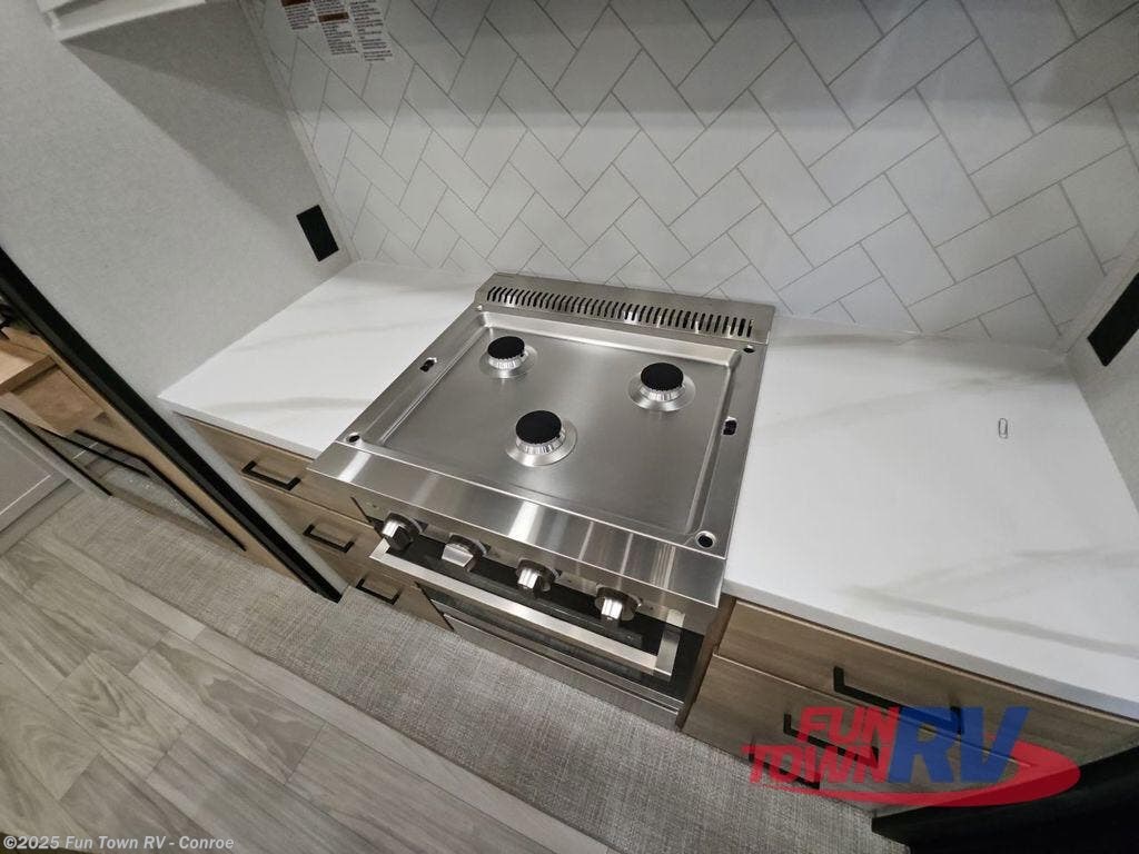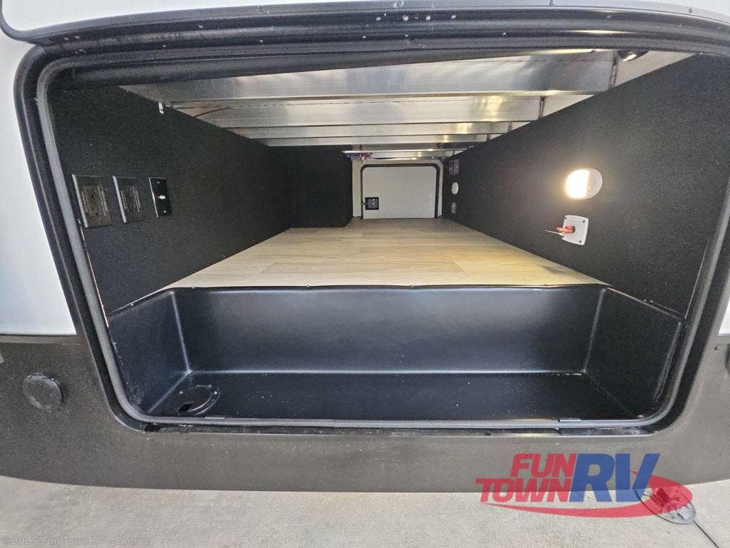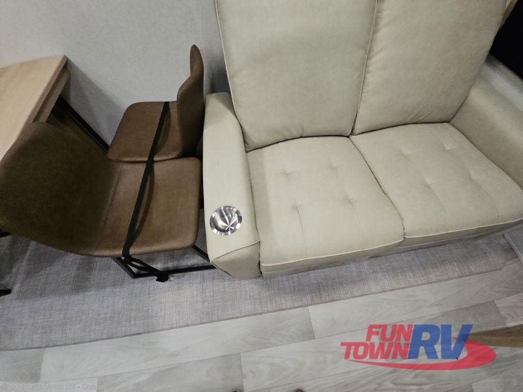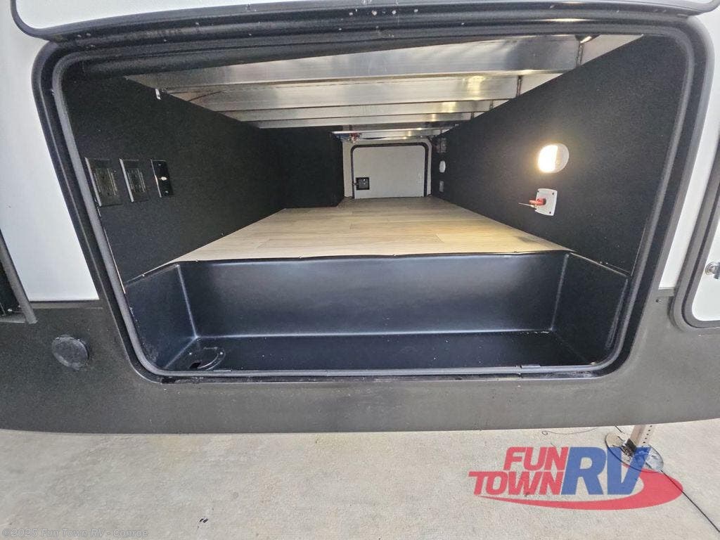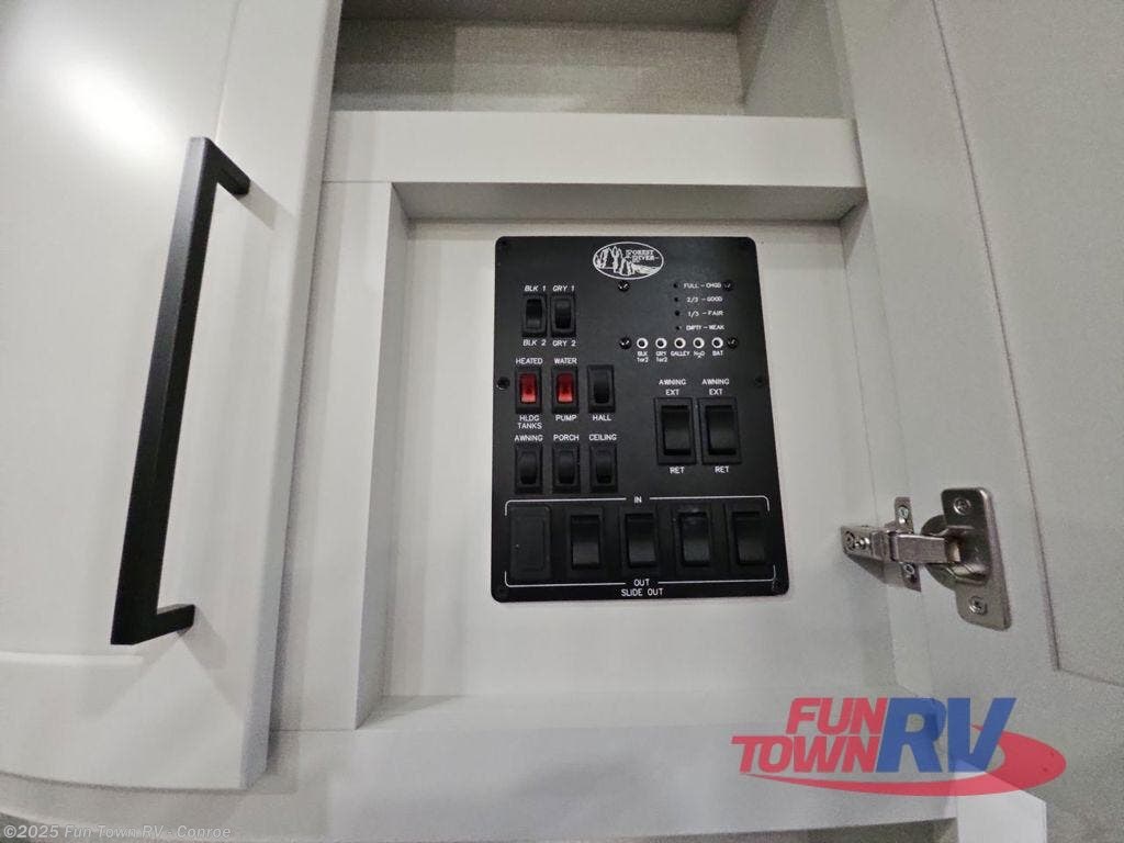 Enjoy a home on wheels with this fifth wheel! There are two bedrooms to choose from plus an upper loft with two 32" x 74" bunk mats, cabinets, and TV prep. The front private bedroom has a queen bed slide across from a dresser and next to a front wardrobe that is prepped to add an optional washer and dryer. The second bedroom has a queen bed slide across from a dresser with wardrobes on either side, plus it's very own full rear bathroom which has a tub and a rear entry/exit door to the unit. The second full bathroom has a one-piece fiberglass shower so everyone can get ready quickly in the morning. Prepare your best home cooked meals with the kitchen island and three burner cooktop then enjoy it at the free-standing dinette. Relax in true comfort each night in the theater seating across from the fireplace and 50" TV at the entertainment center!