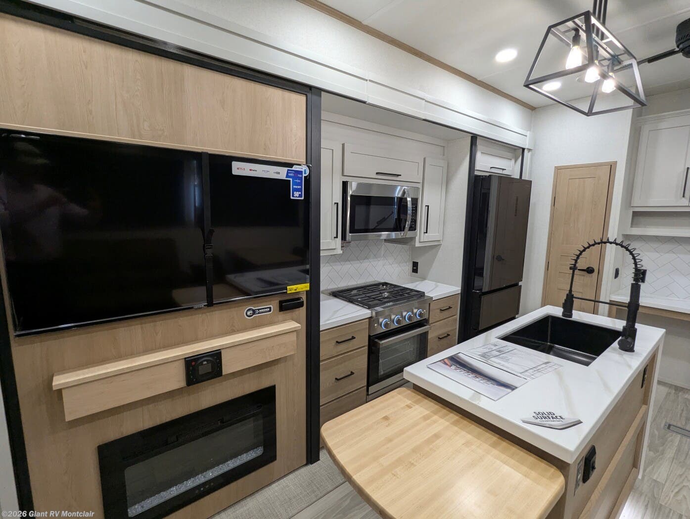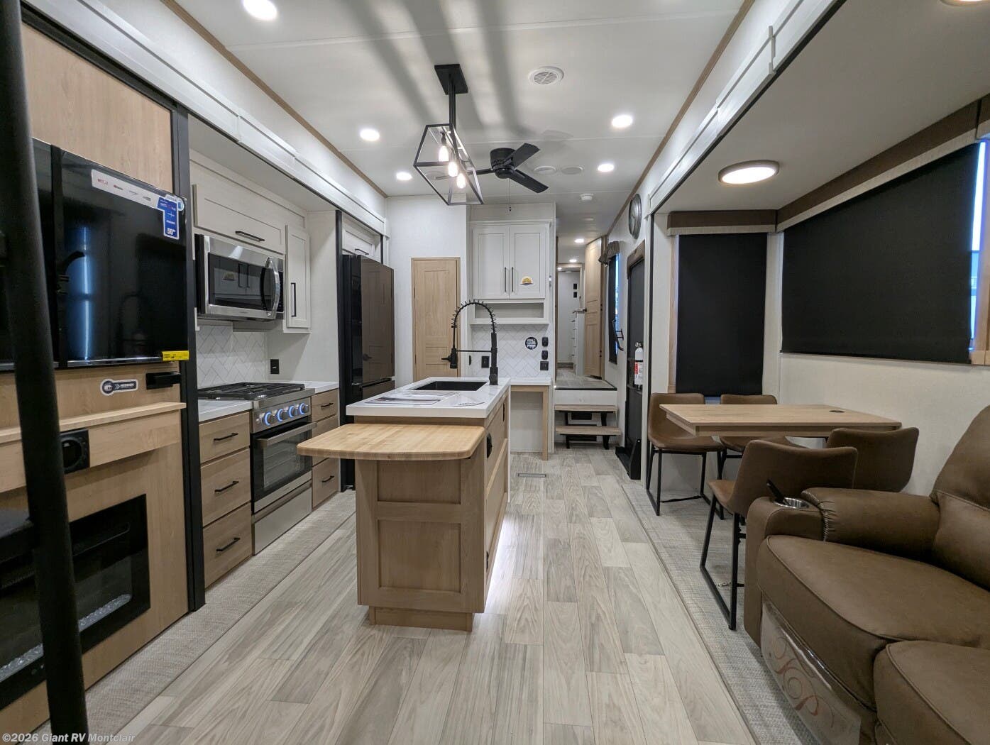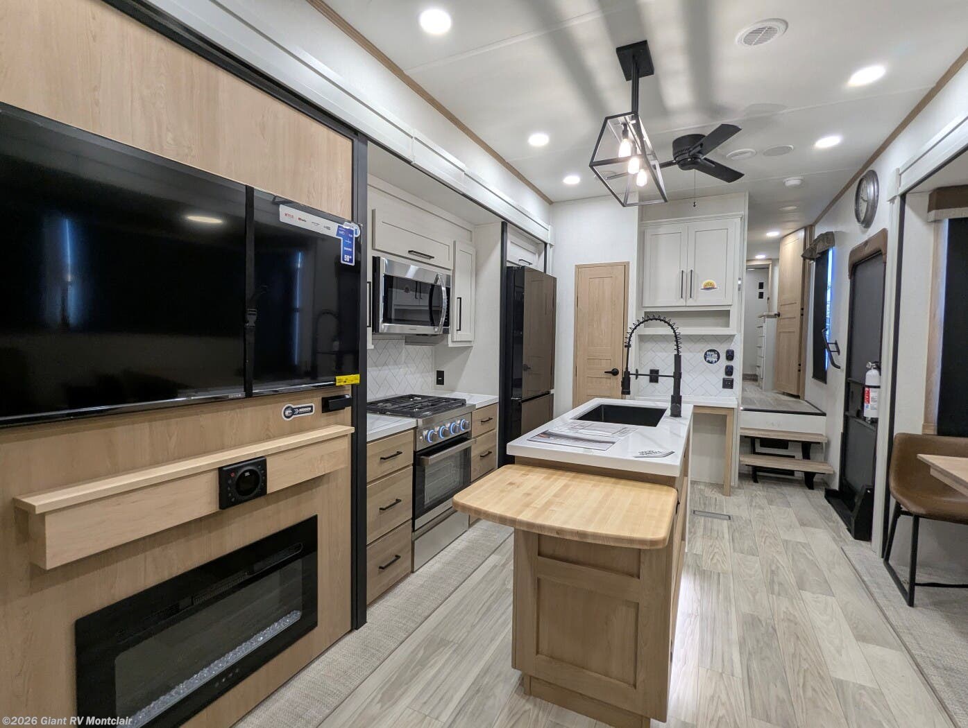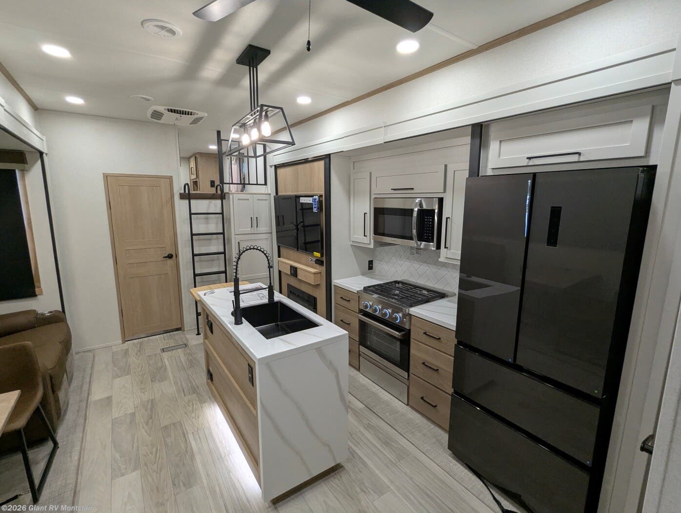 - Gourmet Kitchen: Kitchen island, 16.8 cu. ft. fridge for RV camping