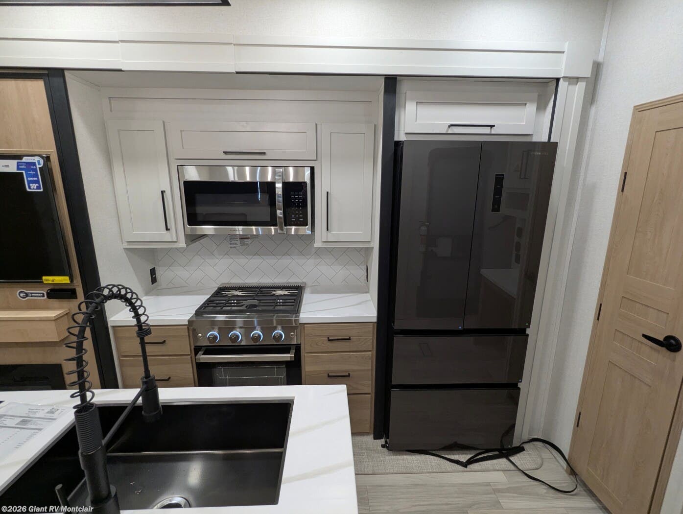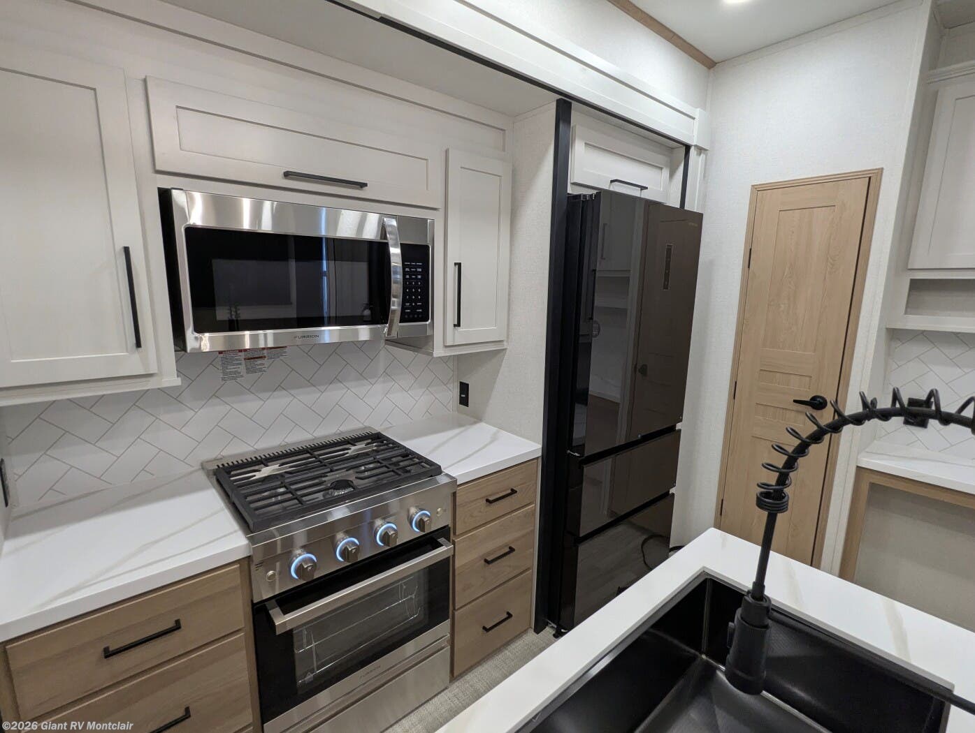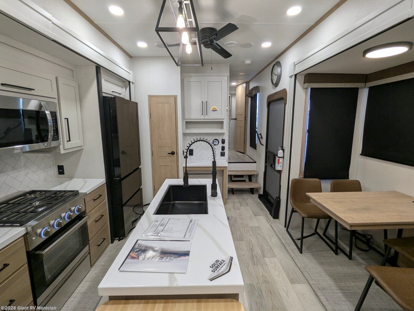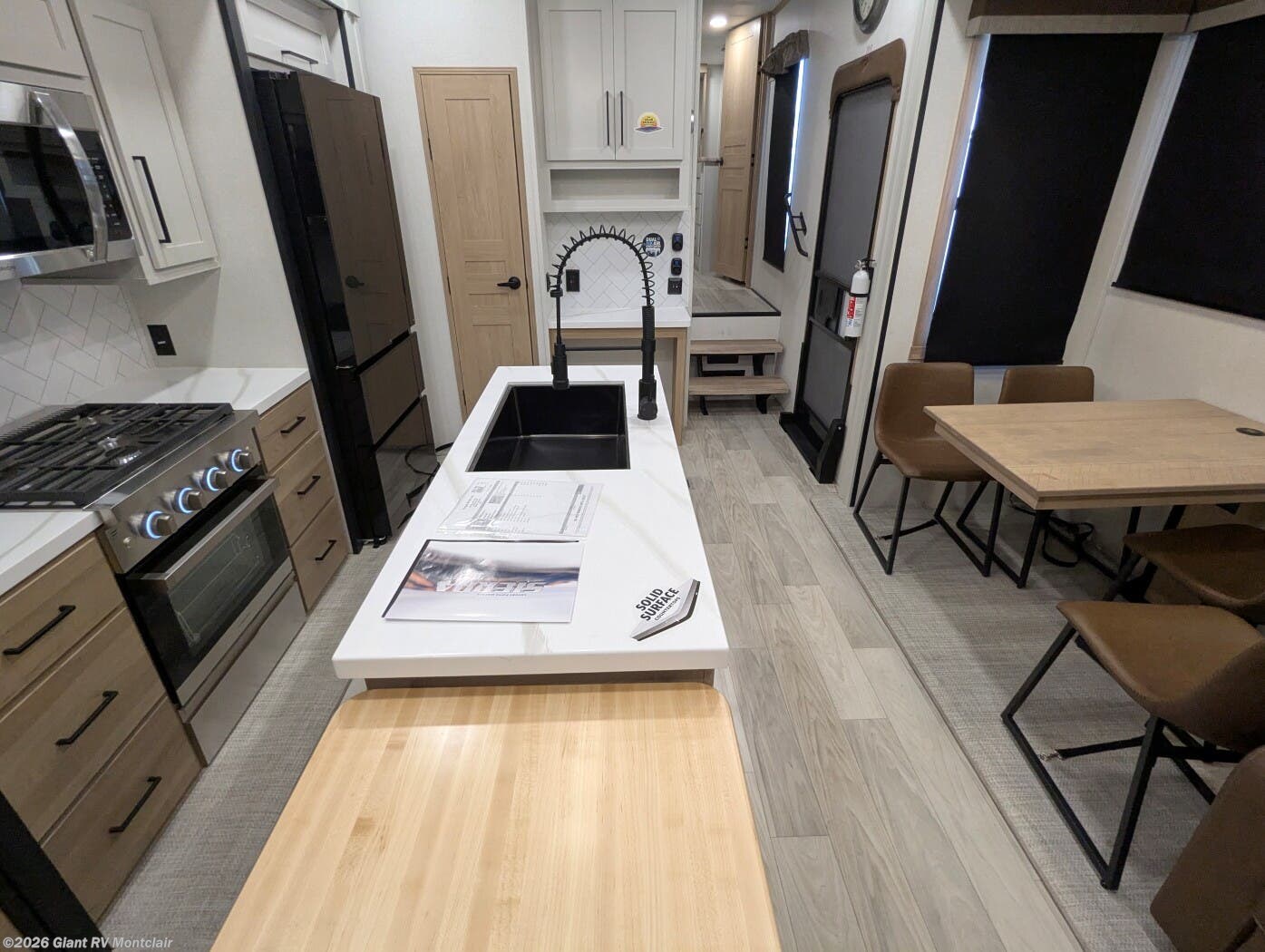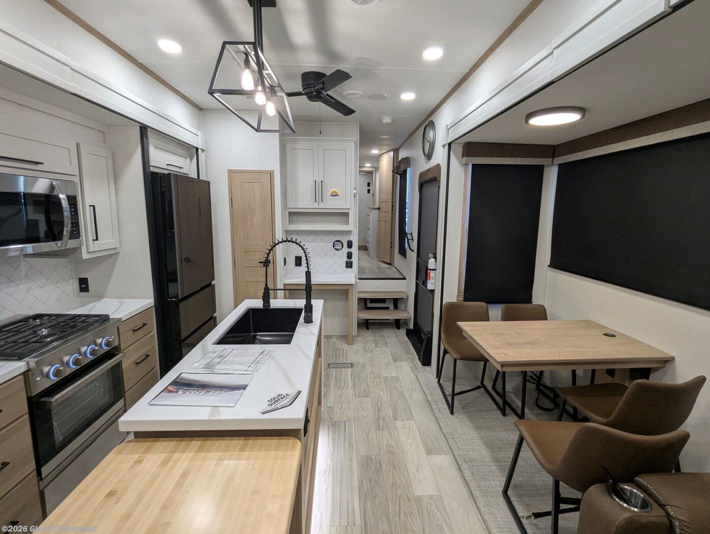 - Gourmet Kitchen: Kitchen island, 16.8 cu. ft. fridge for RV camping