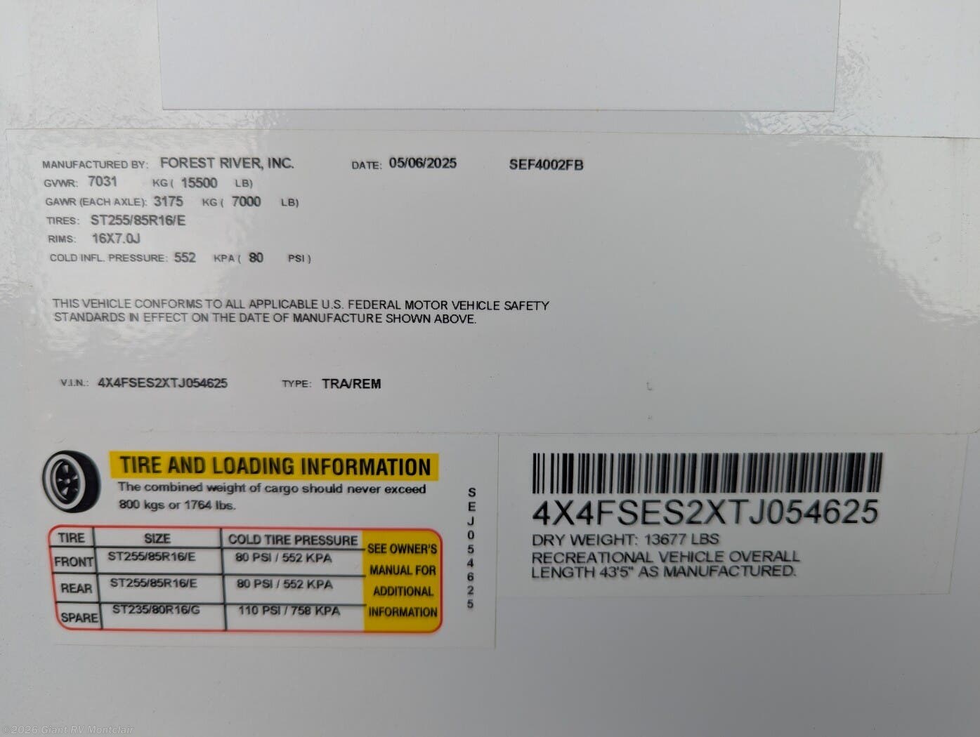 - VIN4X4FSES2XTJ054625