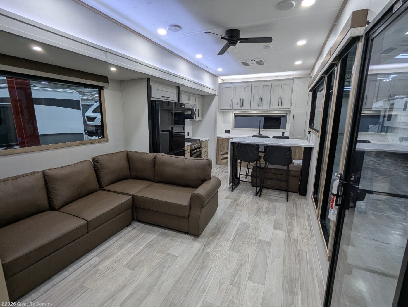 Create a home away from home with the 2026 Forest River Sierra Destination 422FKL, a luxurious destination trailer designed for extended stays or seasonal living. Available at Giant RV, this Sierra 422FKL features a six-sided aluminum frame, Underbelly Armor, and three slide-outs, offering a spacious 42' layout at 11,929 lbs. With a front kitchen and loft, it’s perfect for family-friendly RV camping.