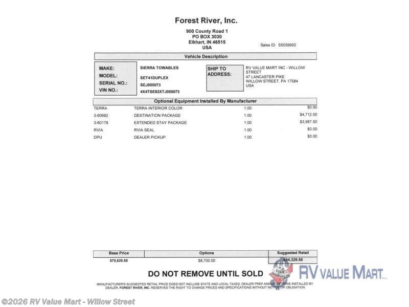 Request More Info on this 2026 Forest River Sierra Destination Trailers 41DUPLEX Offered for sale by RV Value Mart - Willow Street