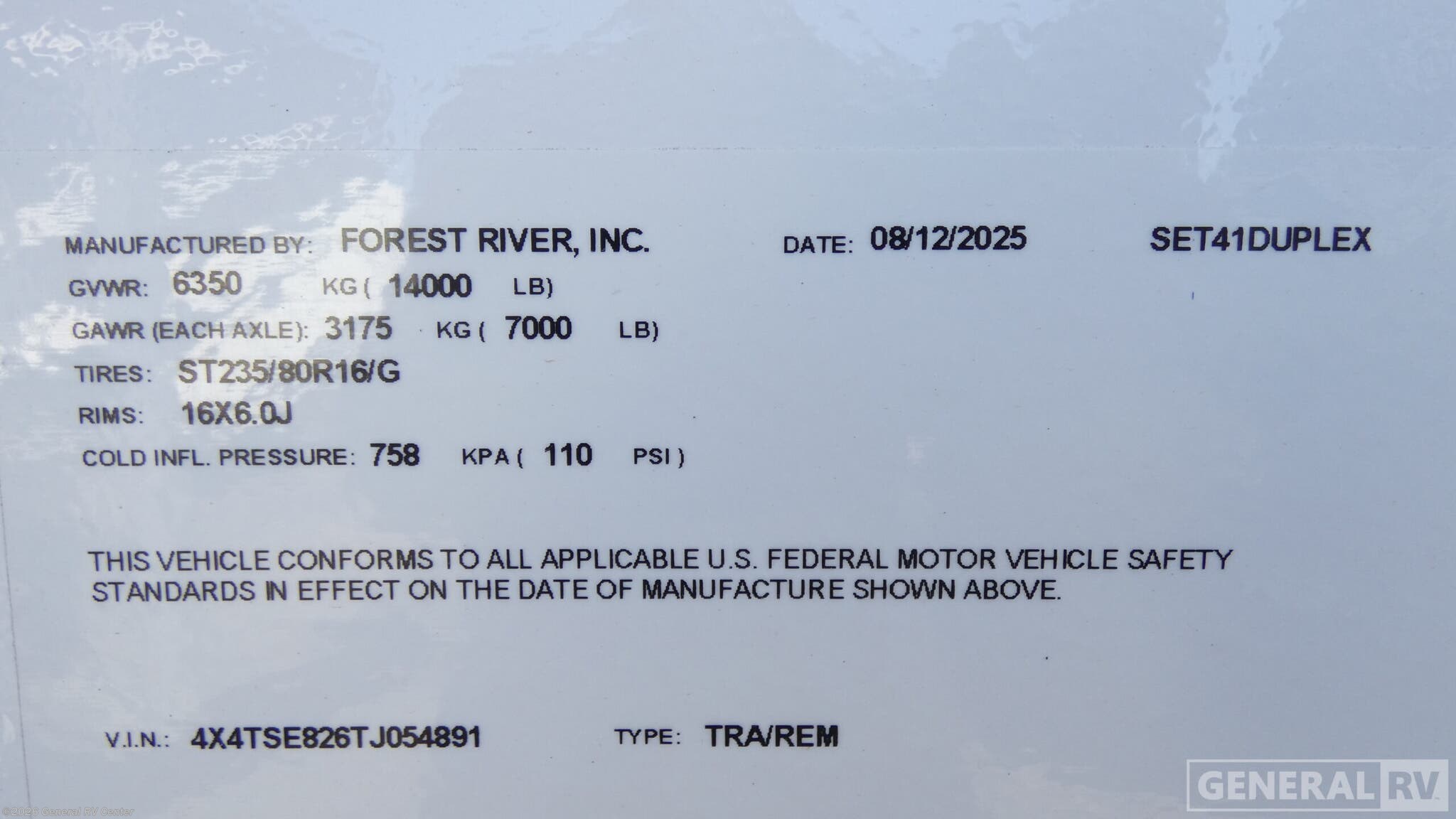 - VIN4X4TSE826TJ054891