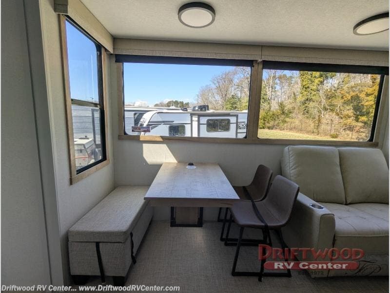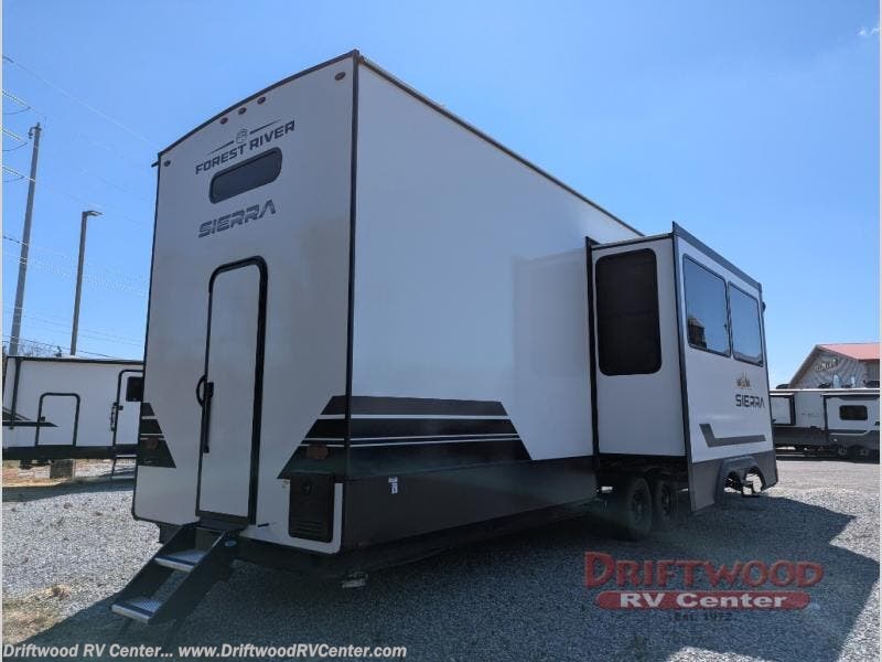 With each Sierra Destination Trailer by Forest River you will enjoy many luxurious features, such as crown molding over the kitchen cabinets, solid surface kitchen countertops, a memory foam mattress, plus so much more. The extra large picture windows throughout let natural light in and provide beautiful outdoor views, and each model includes three or more slides for added interior space. You'll find many exterior conveniences, like the porch light with an interior switch, the rain gutters with extra long drip spouts to prevent black streaking, and an electric awning with LED light strip, plus more! You will stay comfortable year around with dual 15,000 A/C units plus each model is constructed with an Underbelly Armor for better protection and insulation!
