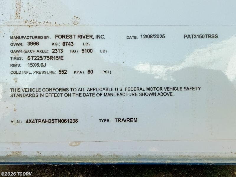 Request More Info on this 2026 Forest River Solaire 3150TBSS Offered for sale by TGORV