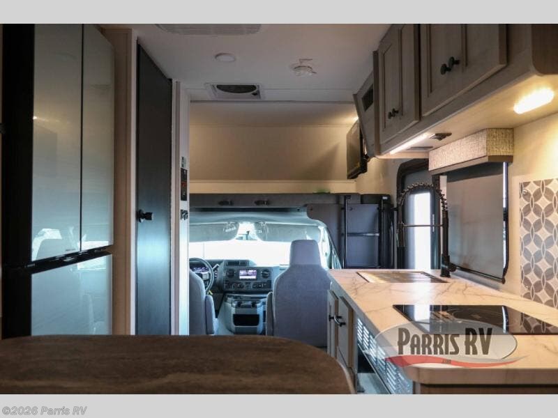 This Class C motorhome is designed for effortless travel, with a thoughtful layout and plenty of comfort. The U-dinette transforms into a comfy sleeping area, perfect for relaxing. Catch a game or movie on the 12V Swing arm TV and enjoy snacks from the pantry and 12V fridge. The convection microwave and air fryer make meal prep an easy task, while the flip-up countertop adds extra space for food prep or coffee breaks. Plus, the wet bath is cleverly designed for convenience, with everything you need for a refreshing stay. The bunk over the cab is the cherry on top, perfect for kids or guests, adding extra sleeping space without sacrificing comfort