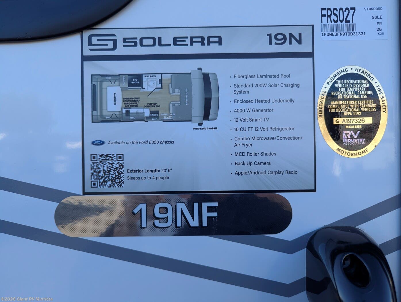 Visit Giant RV in California today to explore the 2026 Forest River Solera 19N—your efficient, well-planned home on wheels ready for every journey.
