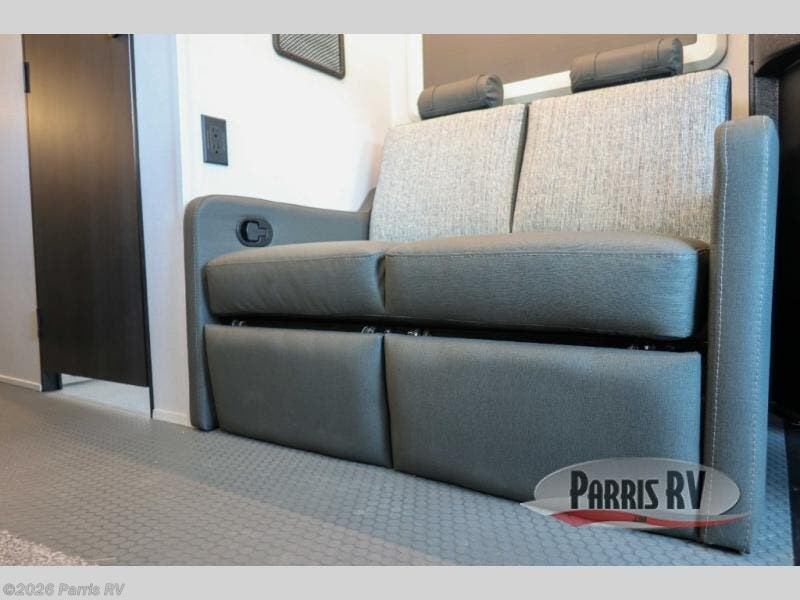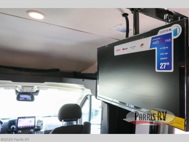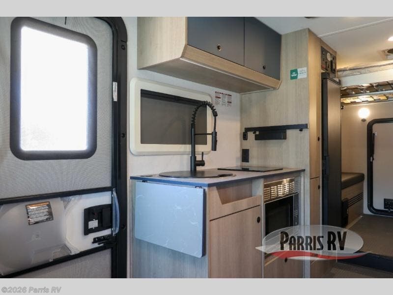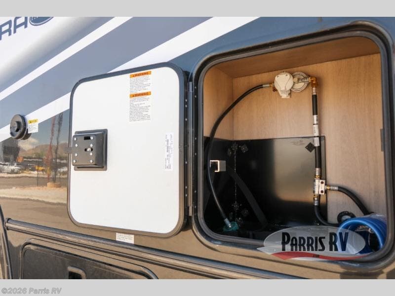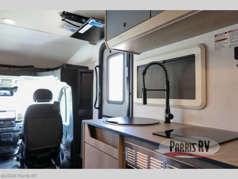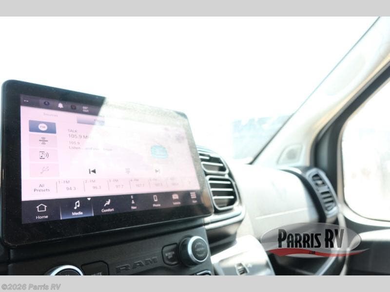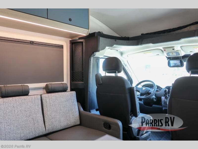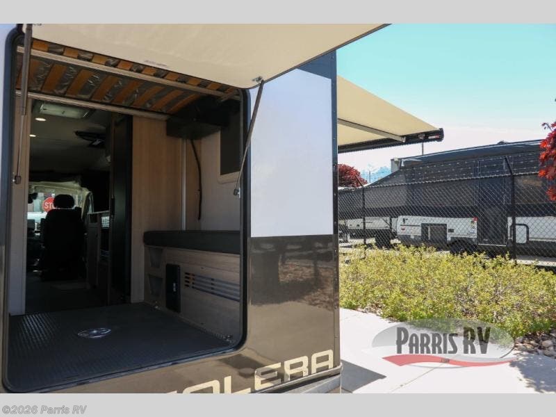 The Solera Class C gas motorhome on the Ram ProMaster chassis is ready for adventure when you are! It's constructed with aluminum framed laminated sidewalls, superlite composite substrate, and a gel coat exterior fiberglass for added durability. Inside, you will enjoy built-in blackout privacy shades, swivel captain's seats, soft-touch self-closing drawer guides and more comforts. The expandable 200-watt roof-mounted solar powered 12V charging station and 100-AhH lithium battery will keep your adventures powered up, and the Magnadyne digital antenna will help keep you connected as you travel.
