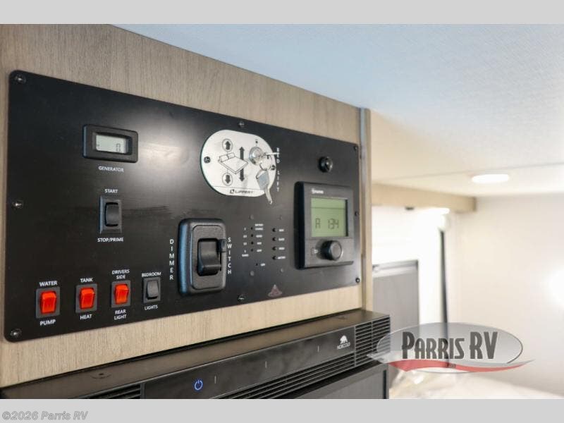 Experience the art of motorhome living with this exquisite model. The Euro power lift bed is a haven of comfort, effortlessly gliding up to reveal a spacious wardrobe with ample storage for your attire. Two spacious cabinets keep your belongings organized and within reach. The sleek induction stove top (single burner) is perfect for crafting gourmet meals, while the pantry keeps your ingredients fresh and readily available. The plush sofa is the ideal spot to unwind, and the swing-down roof-mounted TV ensures you can enjoy your favorite shows or movies in style. In addition, overhead cabinets will provide additional storage space, keeping your belongings tidy and easily accessible.