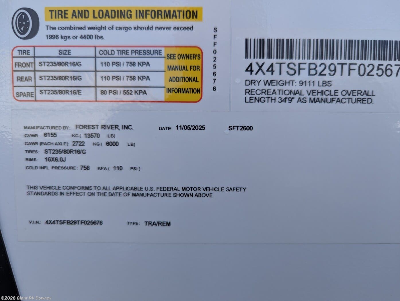 - VIN4X4TSFB29TF025676