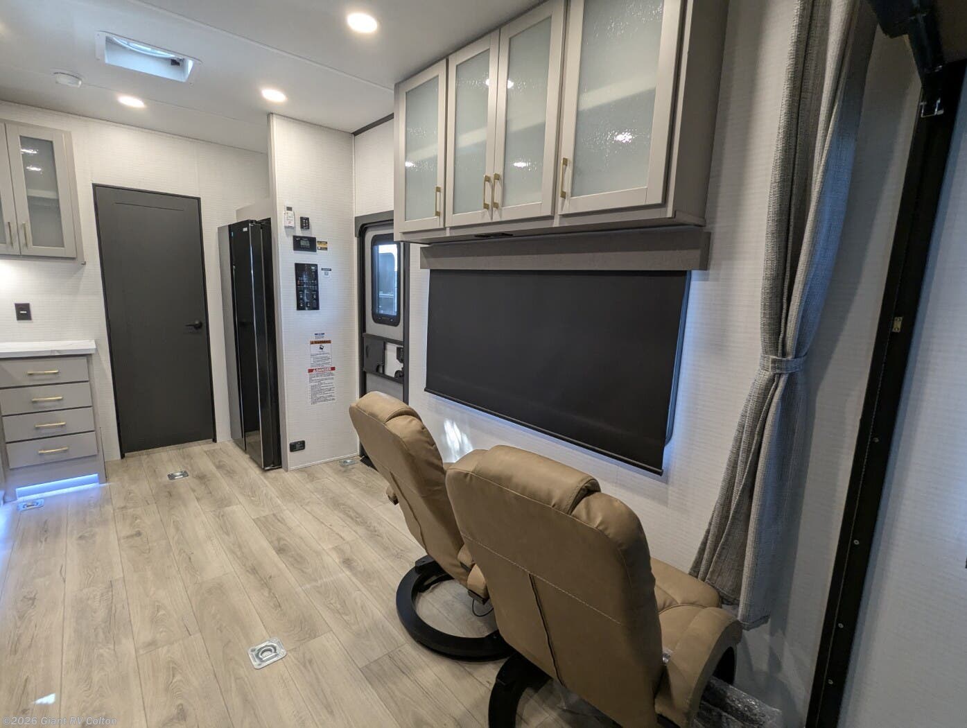 - Versatile Toy Hauler Layout: Sleeps up to 6 with a 14’ garage, electric bunk beds, and a private front bedroom for family camping comfort.