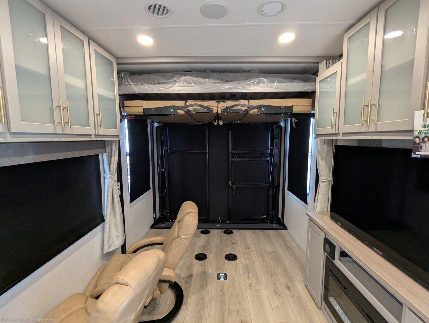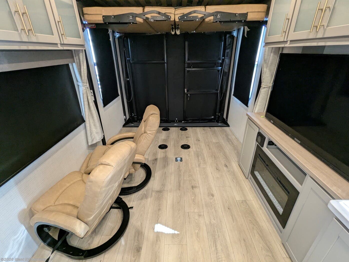 - 16'1" Cargo Garage with electric pass-thru dinette and drop-down bed for gear, guests, or lounge space.