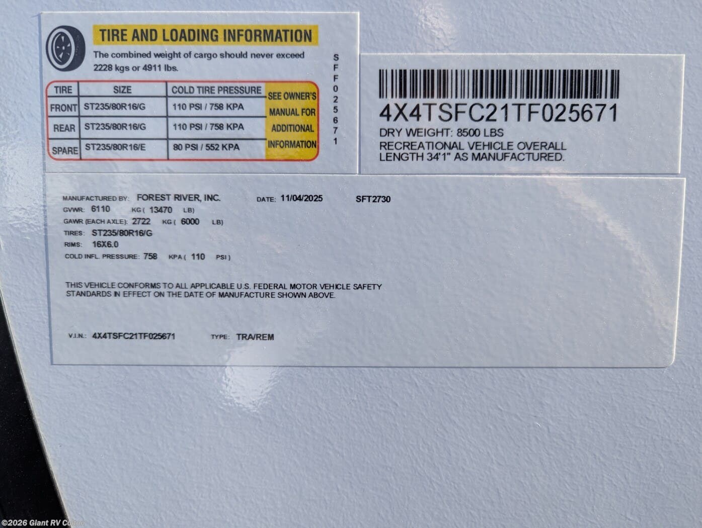 - VIN4X4TSFC21TF025671