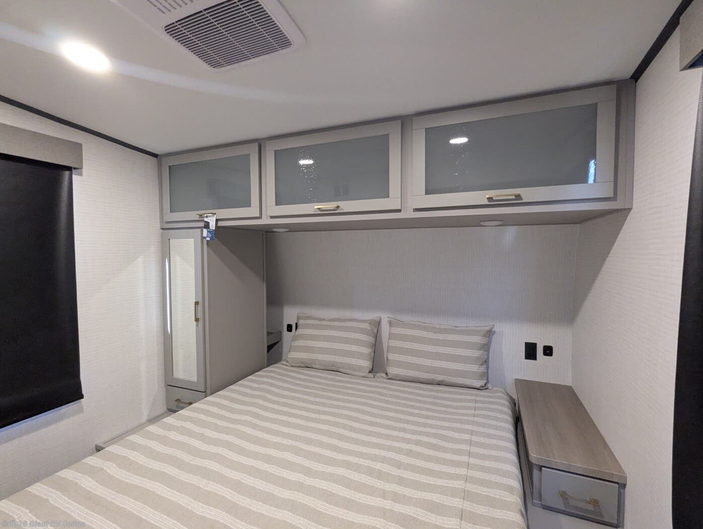 - Private Front Bedroom featuring a comfortable queen bed, wardrobe storage, and a sliding door for added privacy.