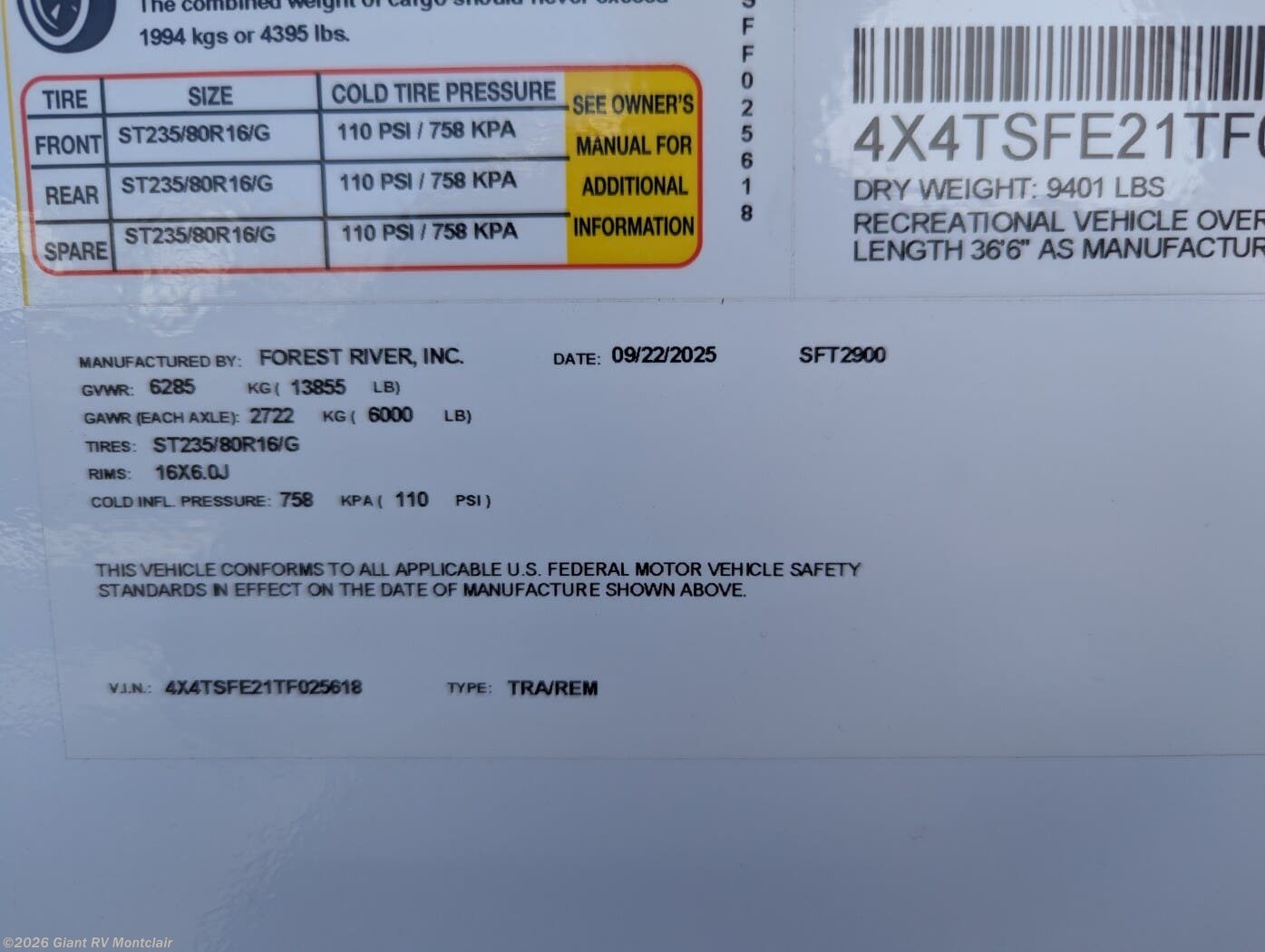 - VIN4X4TSFE21TF025618