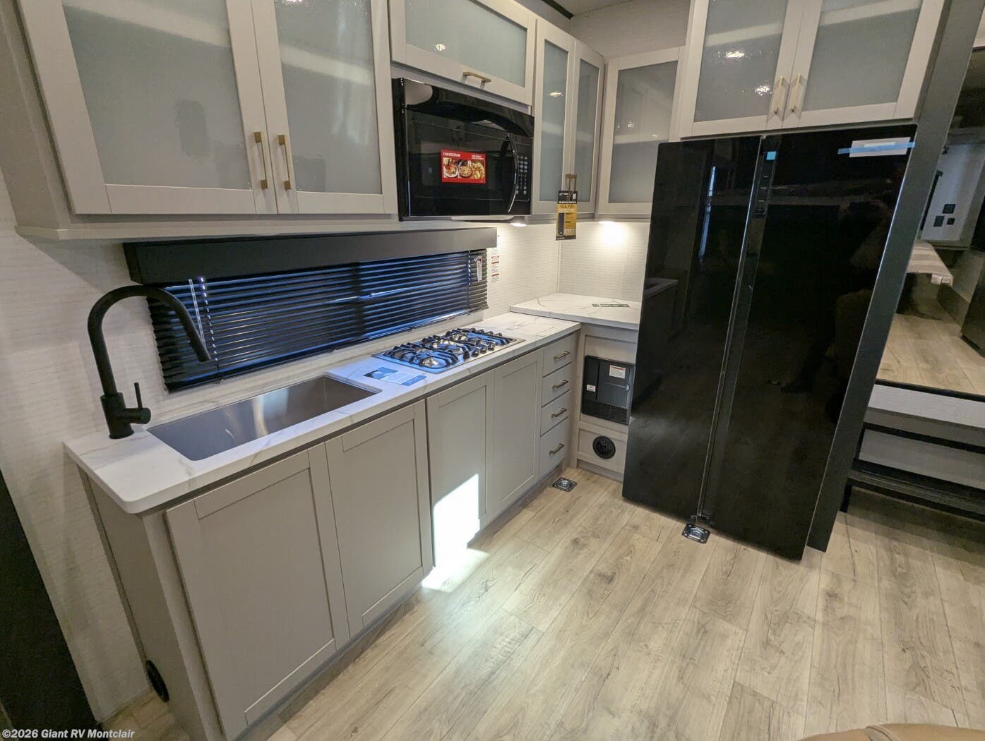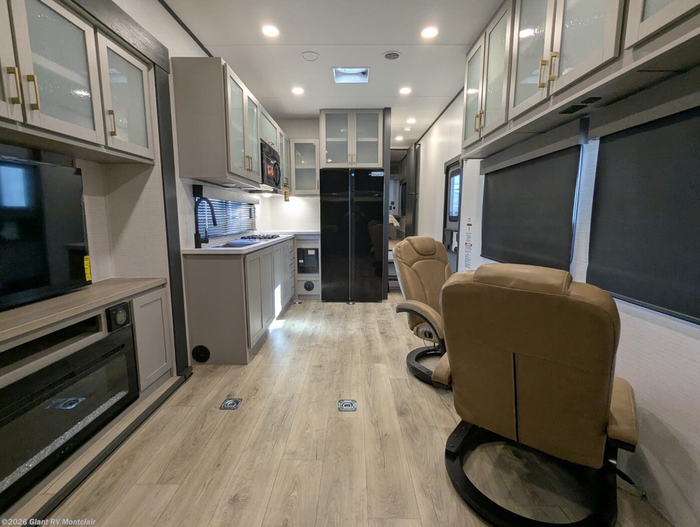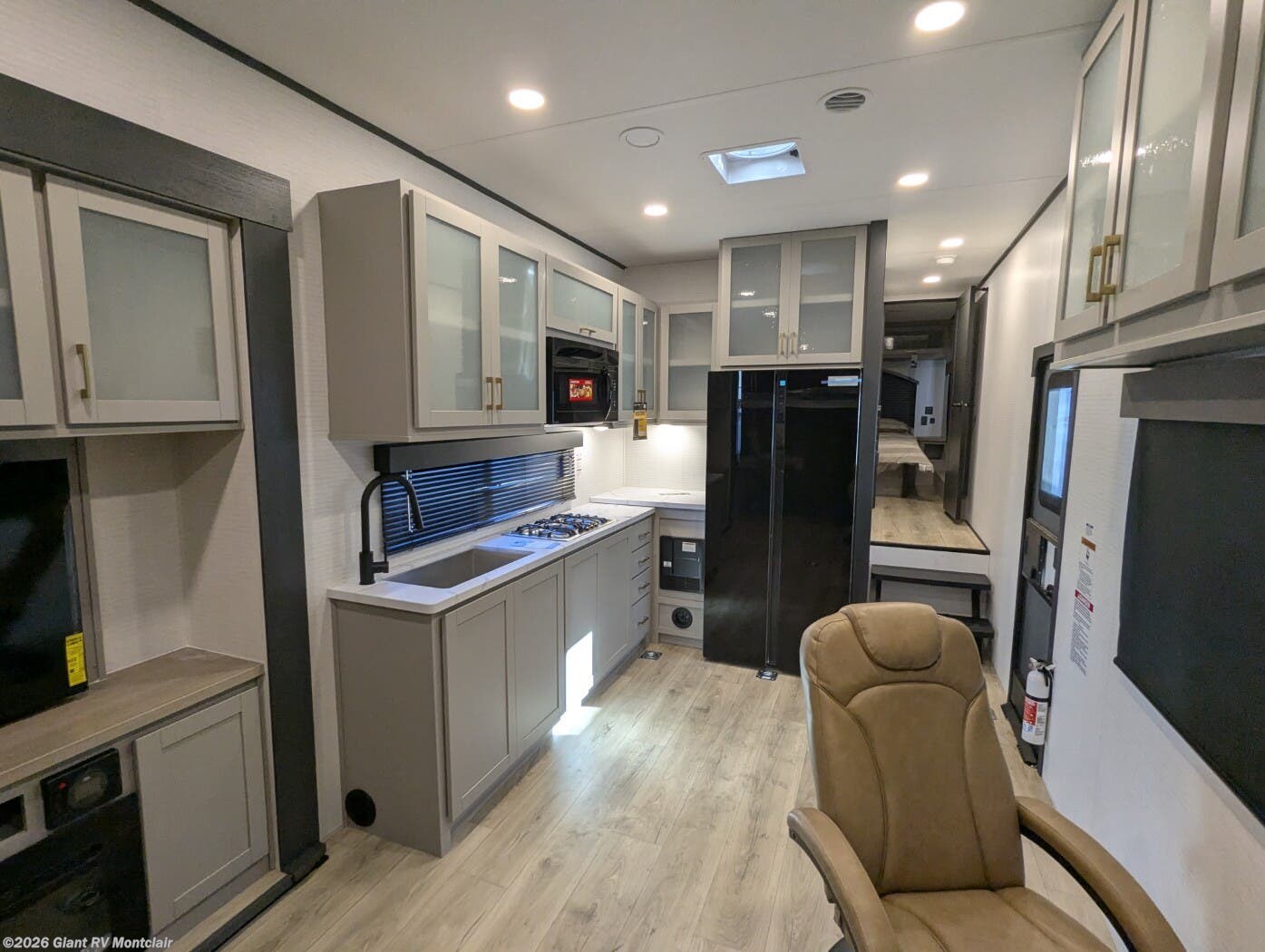 - Open Kitchen & Living Area with ample countertop space, full-size appliances, multiple seating options, and an entertainment center designed for relaxing after a day of riding.