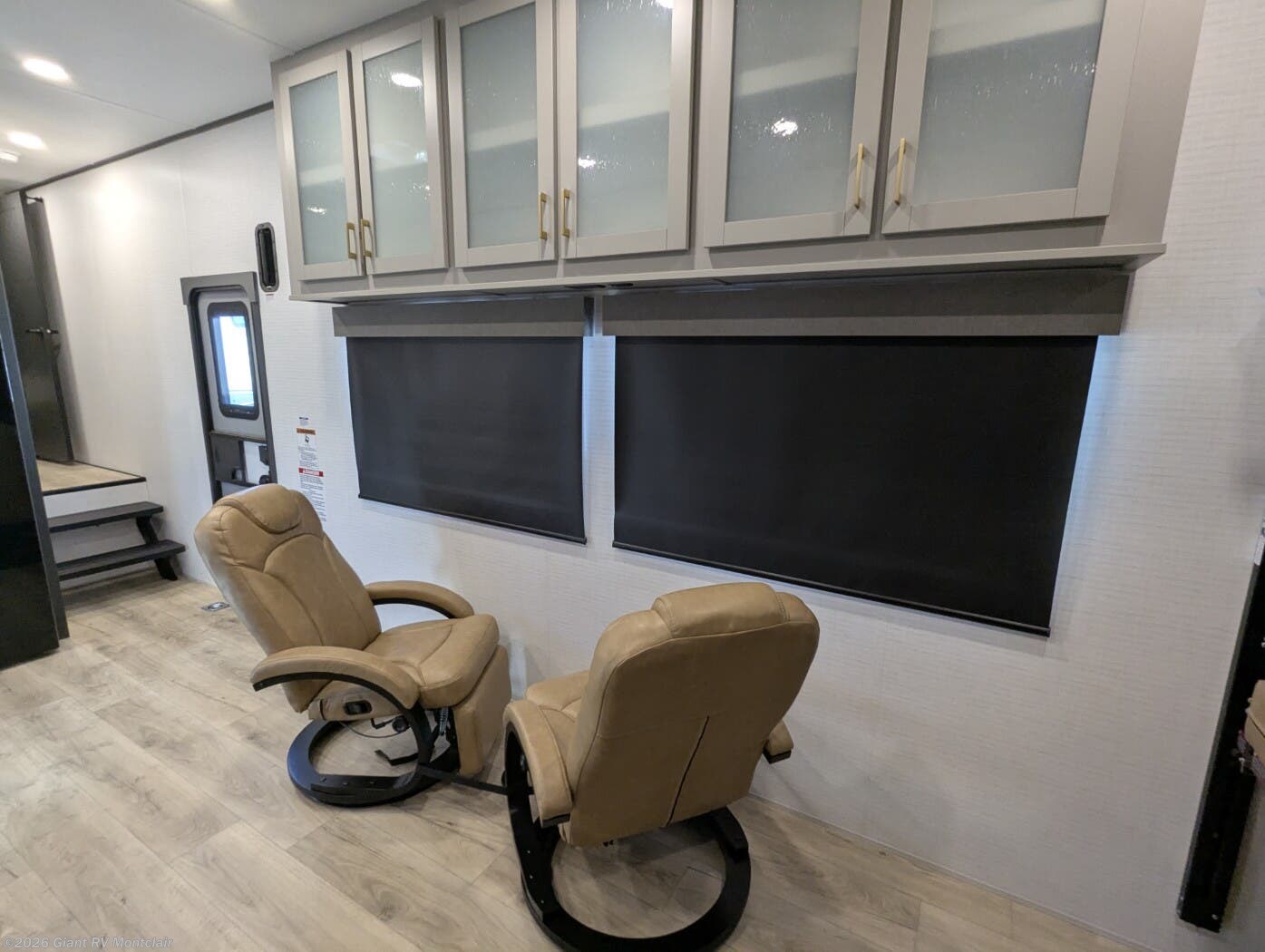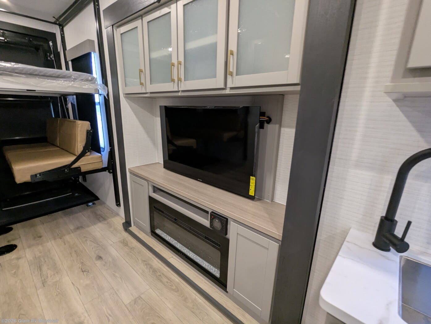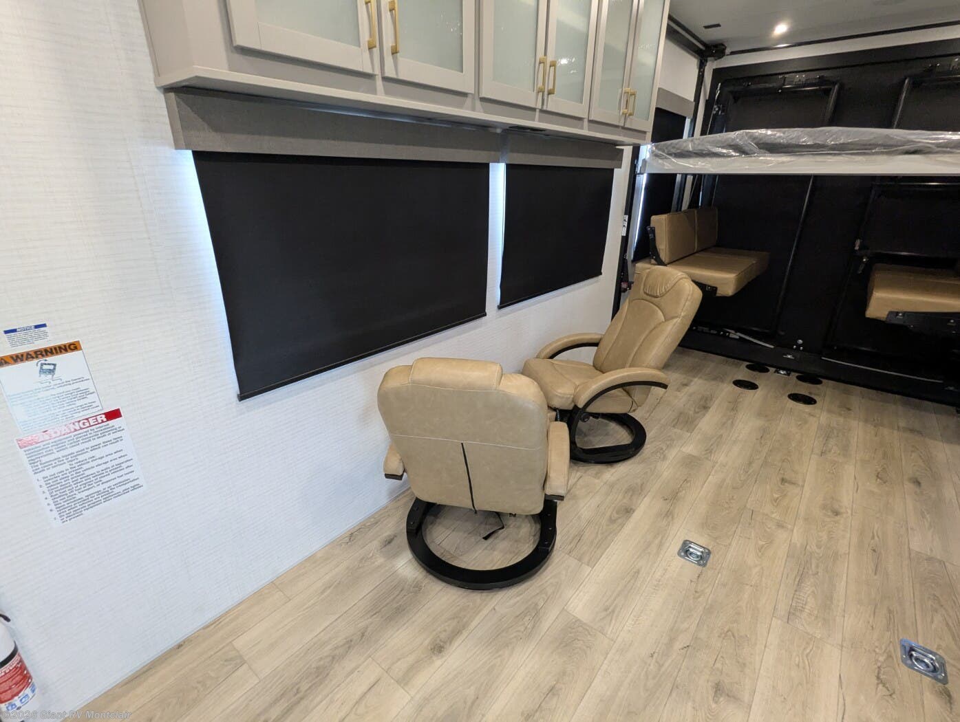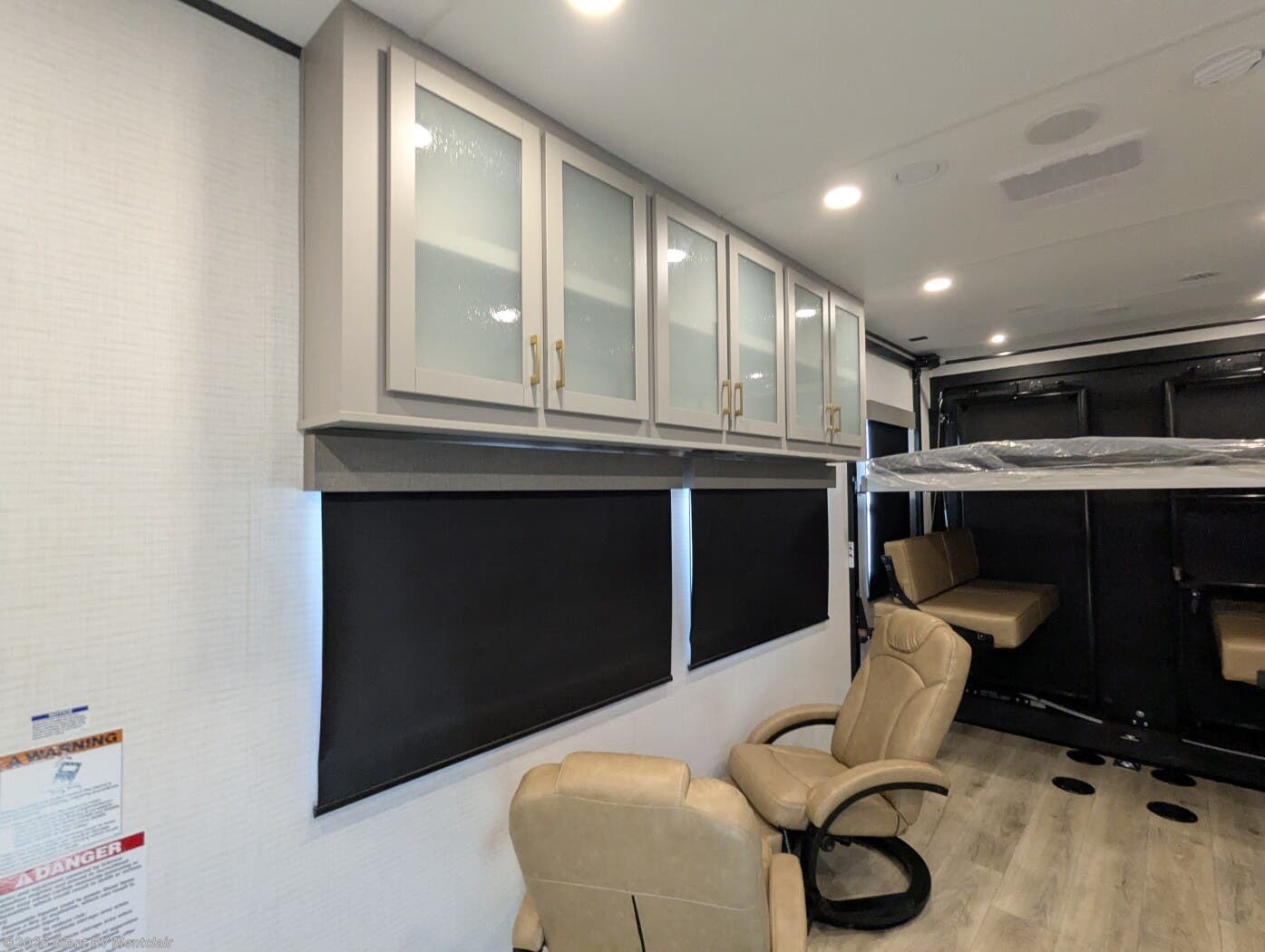 - Open Kitchen & Living Area with ample countertop space, full-size appliances, multiple seating options, and an entertainment center designed for relaxing after a day of riding.