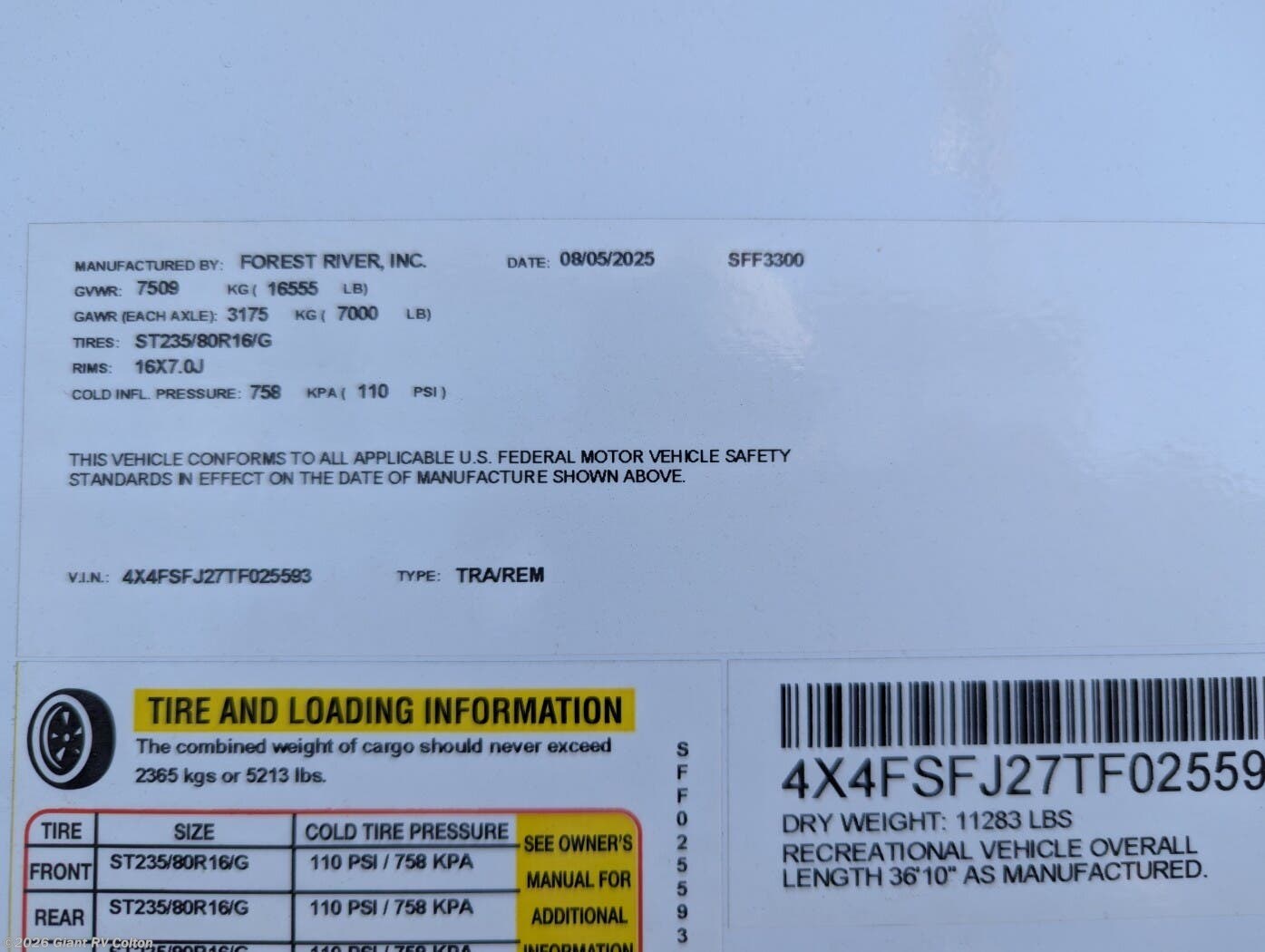 - VIN4X4FSFJ27TF025593