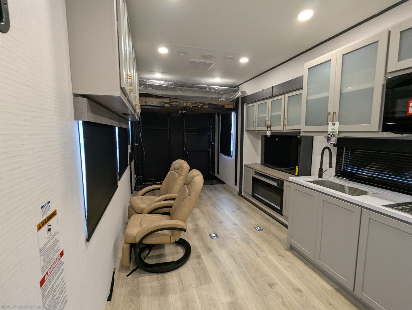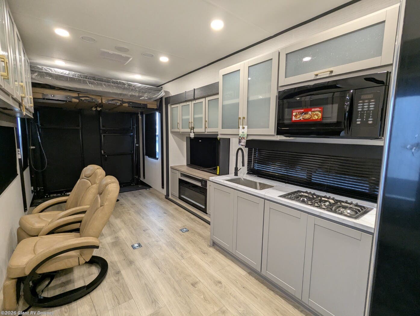 - Open Kitchen & Living Area with ample countertop space, full-size appliances, multiple seating options, and an entertainment center designed for relaxing after a day of riding.