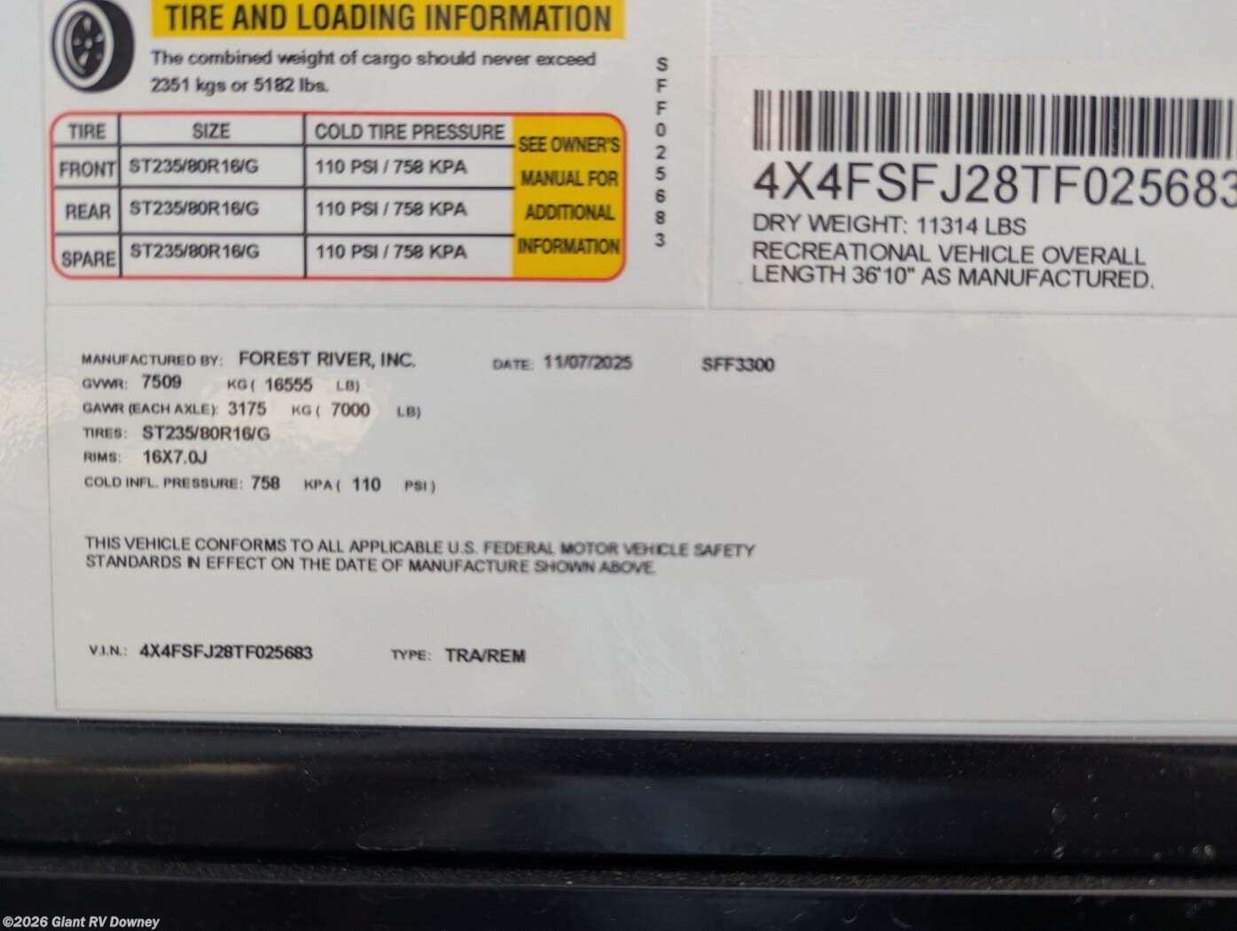 - VIN4X4FSFJ28TF025683