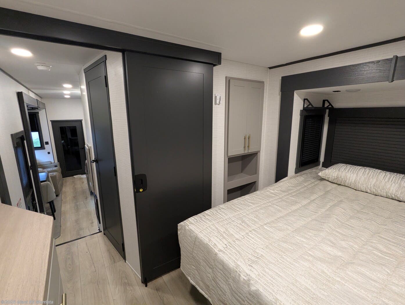 - Front King-Bed Private Suite — A dedicated retreat at the front of the trailer giving separation for rest and comfort.