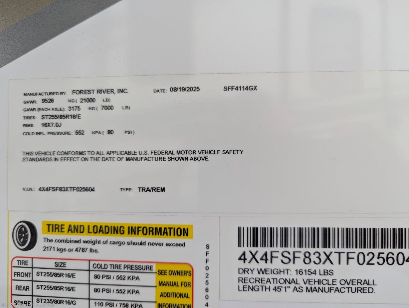 - VIN4X4FSF83XTF025604