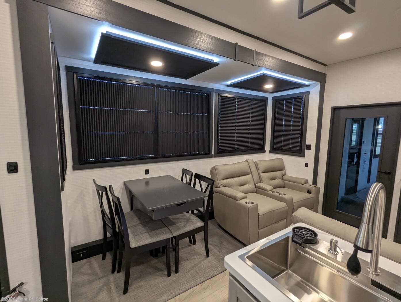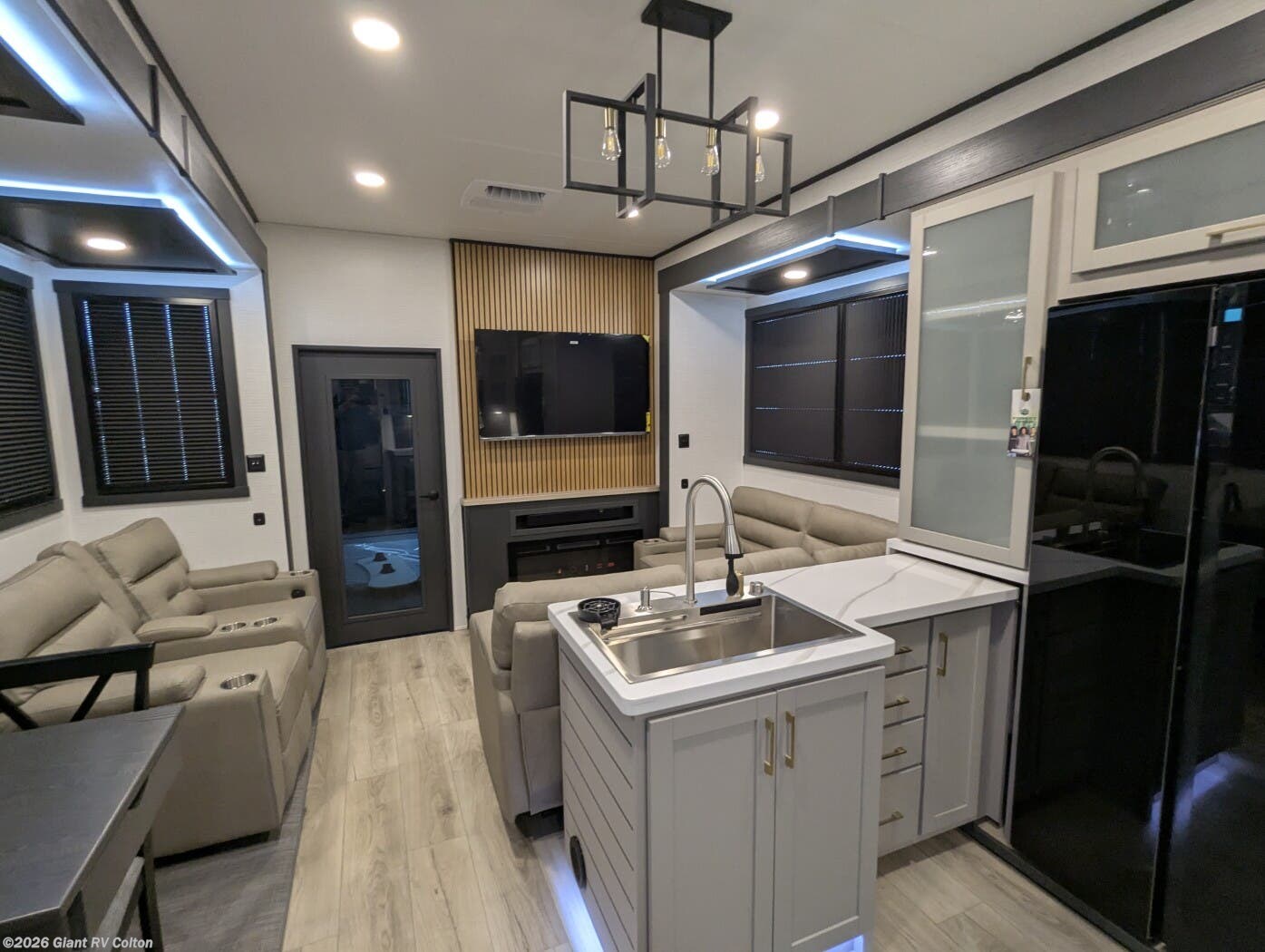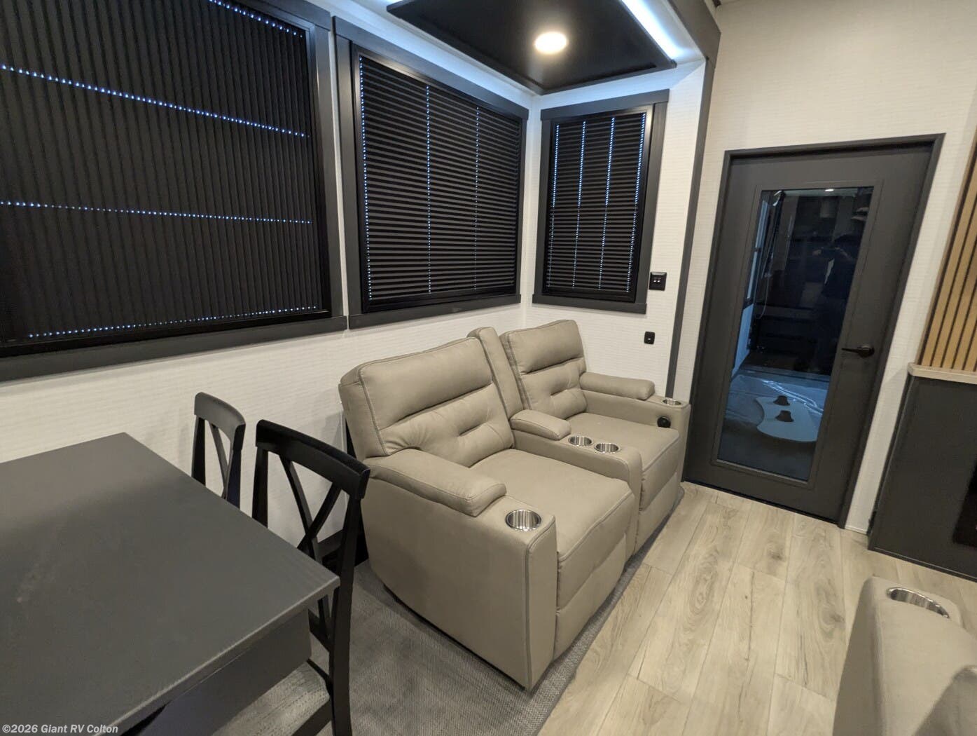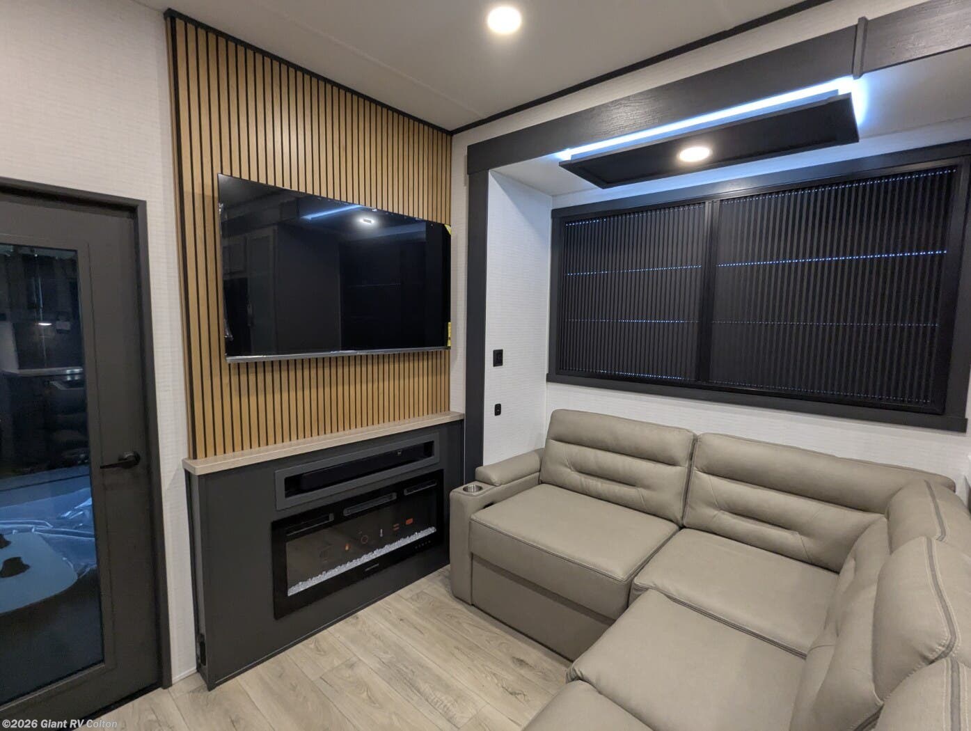 Experience the perfect blend of adventure and luxury with the 2026 Stealth 4114GX, a premium toy hauler fifth-wheel built for thrill-seekers who demand comfort and versatility. Featuring a spacious 14-foot cargo garage with ramp door, a cozy loft sleeping zone, and a luxurious front king-bed private suite, this layout is engineered for gear, guests and extended stays. In the main living area, you’ll find theatre-style seating across from an entertainment wall, a chef-ready kitchen, and dual sliding doors to turn the garage into lounge or guest space. Whether you’re hauling side-by-sides, hosting friends, or simply relaxing in style, the Stealth 4114GX delivers premium living for your largest adventures.