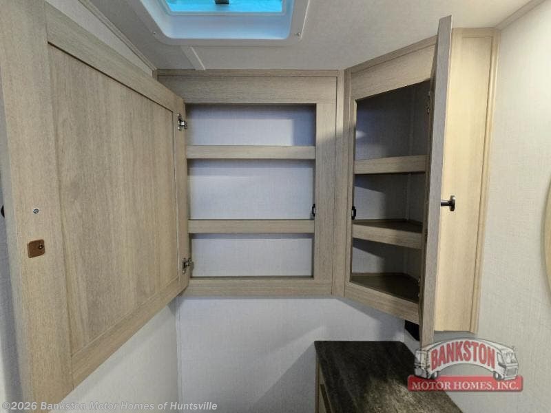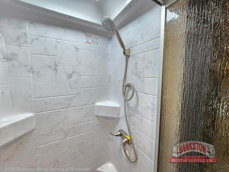 Grab your sunhat and your adventurous spirit and head out with this motorhome! There is a rear private bedroom to change your clothes and sleep soundly, and the RV queen bed slide adds more space to this area. The split-style bathroom has a 24" x 36" shower on one side of the coach while the lavatory and vanity stay secluded on the other side. If you don't need the extra sleeping space from the bunk over the cab, you can choose to add the optional Trekker cap with a built-in entertainment center and storage in its place. Sit back with a big bowl of cereal at the booth dinette or get a little more comfortable on the sofa. You can also go outside to prepare some heartier food at the outdoor kitchen.