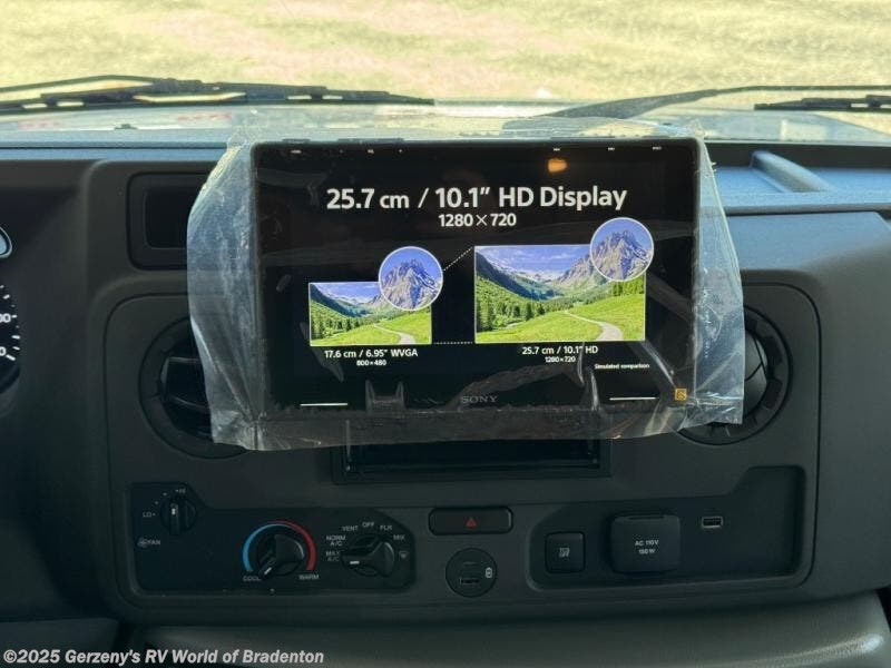 With any Sunseeker Classic Class C gas motorhome by Forest River, you will enjoy more features and quality construction at a great value! Each model comes standard with a fiberglass roof and 2" aluminum framed laminated sidewalls for maximum durability. The Winegard Air 360+ digital antenna is your all-in-one solution for your internet, TV, and FM signal needs, and you have Gateway 4G Wi-Fi capability too. The exterior has an outside shower, heated/enclosed tanks, Rotocast storage compartments, and a power awning with an LED light strip to name a few conveniences. Each drive will be made easy thanks to a 10" touchscreen CarPlay/Android radio with USB and Bluetooth, backup camera/side view cameras with a 3-way monitor, and Ultraleather seating for added comfort. You'll also love the black out roller shades, soft touch self-closing drawer guides, oxygen-infused shower head with a flexible extension, and many more interior comforts!