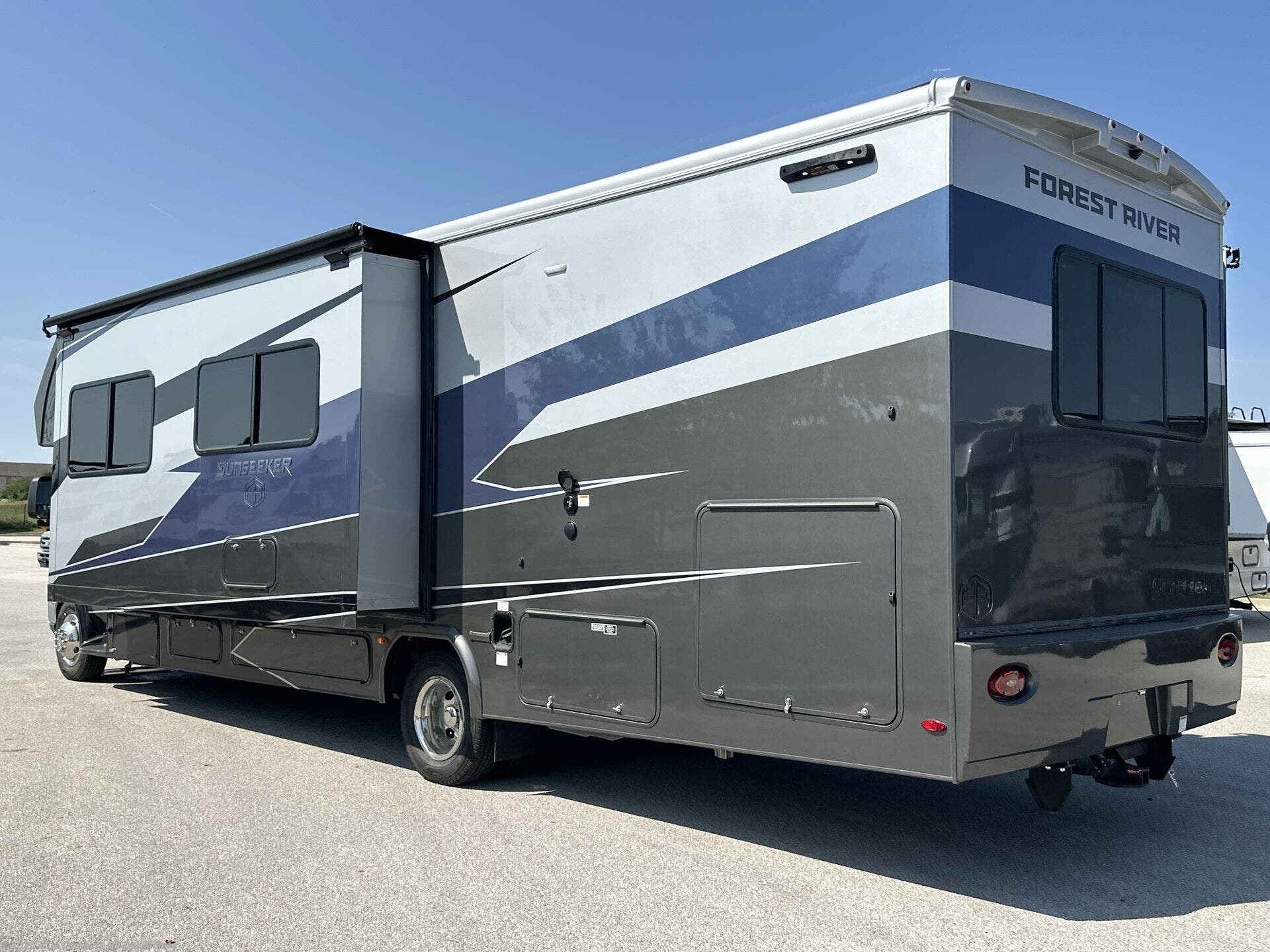 With any Sunseeker Classic Class C gas motorhome by Forest River, you will enjoy more features and quality construction at a great value! Each model comes standard with a fiberglass roof and 2" aluminum framed laminated sidewalls for maximum durability. The Winegard Air 360+ digital antenna is your all-in-one solution for your internet, TV, and FM signal needs, and you have Gateway 4G Wi-Fi capability too. The exterior has an outside shower, heated/enclosed tanks, Rotocast storage compartments, and a power awning with an LED light strip to name a few conveniences. Each drive will be made easy thanks to a 10" touchscreen CarPlay/Android radio with USB and Bluetooth, backup camera/side view cameras with a 3-way monitor, and Ultraleather seating for added comfort. You'll also love the black out roller shades, soft touch self-closing drawer guides, oxygen-infused shower head with a flexible extension, and many more interior comforts!