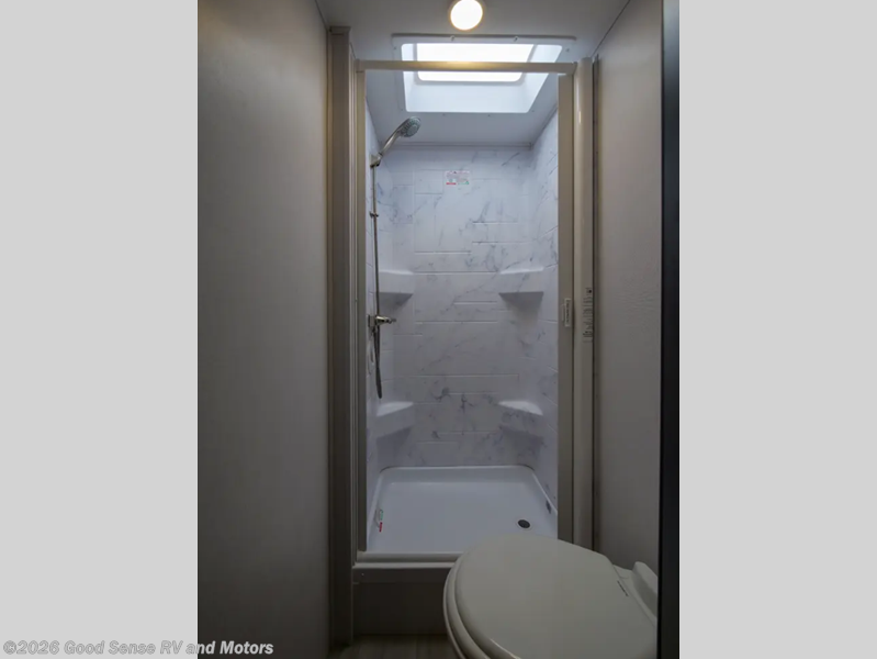 Take your family on great adventures in this Sunseeker LE Class C gas motorhome! This coach has a full kitchen equipped with a flip-up countertop, 1.3-cubic foot convection microwave, recessed three-burner range, soft-touch self-closing drawer guides, and a 10.7-cubic foot 12V refrigerator. Across from the kitchen is a U-shaped dinette that also has four seatbelts for traveling, and there are two large storage drawers in the dinette. The bathroom has an electric roof fan, an oxygen-infused shower head with flexible extension, and a shower skylight for more natural light in the morning. There is also a 12V LED TV for entertainment at night out in the main living area.