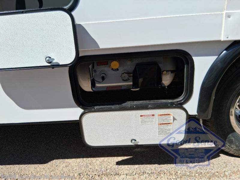 Each Forest River Sunseeker LE Class C gas motorhome comes with the LE Premier Package for your benefit! This package includes great features like backup/sideview cameras with rearview mirror monitor, a fiberglass front cap, an in-dash premium sound system with Bluetooth, a Winegard Air 360+ antenna with preparation for Gateway 4G Wi-Fi, toppers for the slide outs, and a 15,000 BTU ceiling-ducted, ultra-quiet roof air with heat pump. All of these premium features rest on a Superlite composite substrate, 2"-thick gel-coat sidewalls with lightweight composite waterproof material, block-foam insulation, and a fiberglass roof. There is a satellite/cable connection, a 30,000 BTU furnace, a Maxx Air multi-speed power fan, and black-out roller shades.
