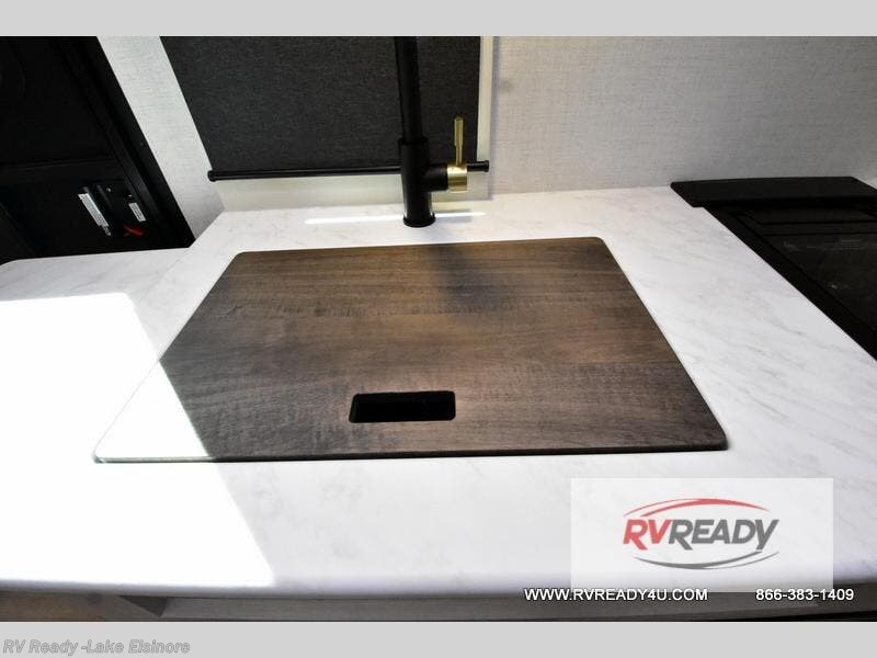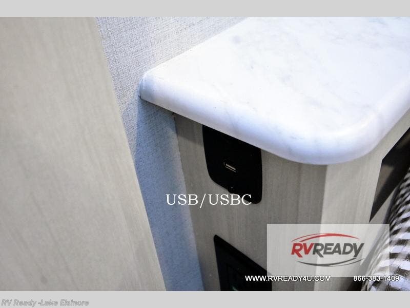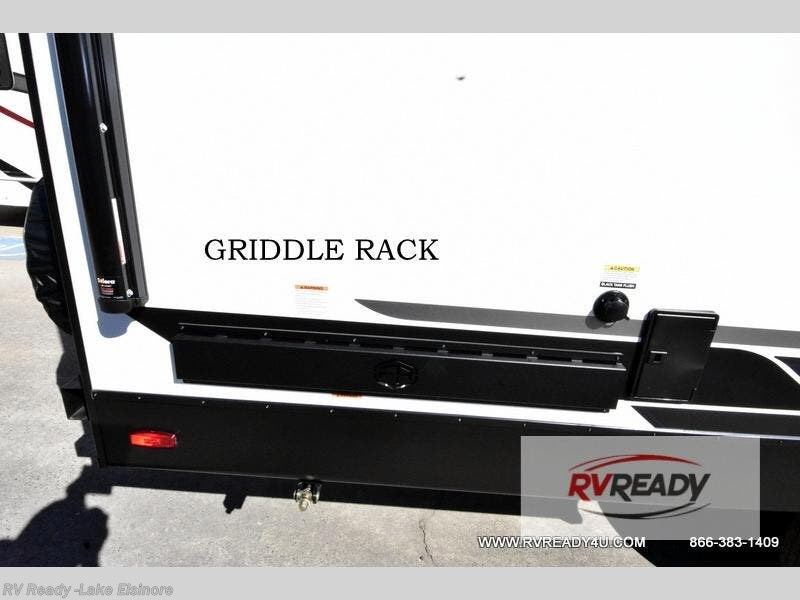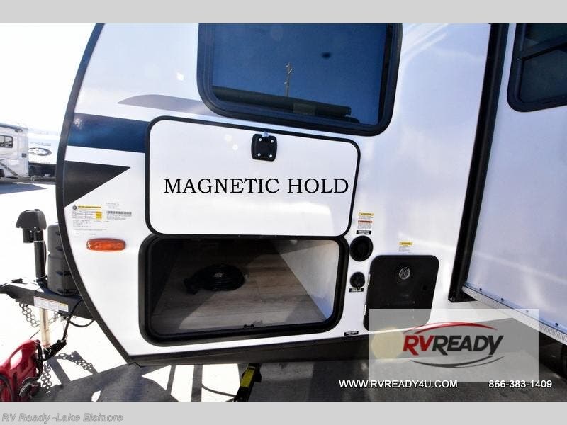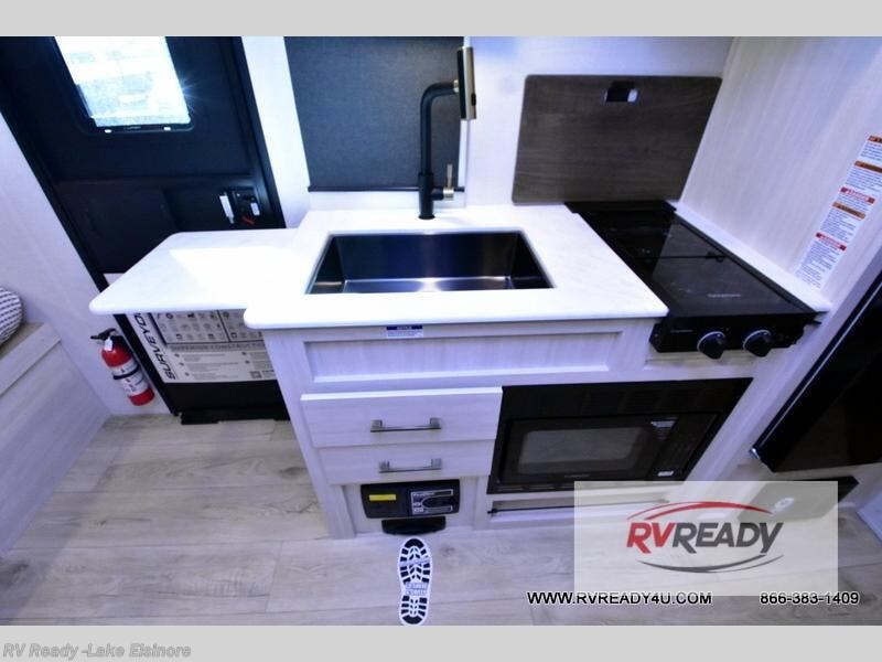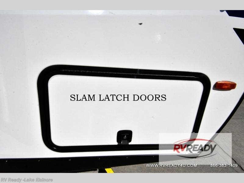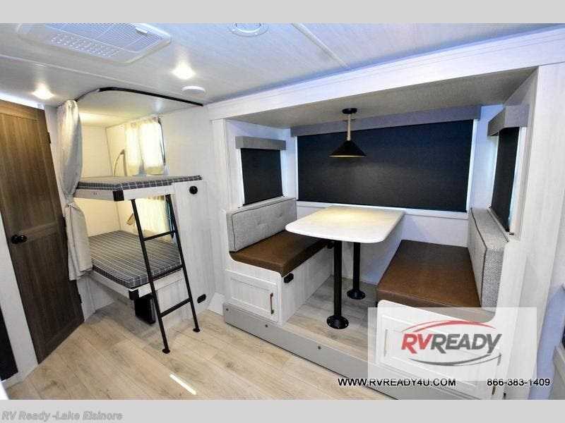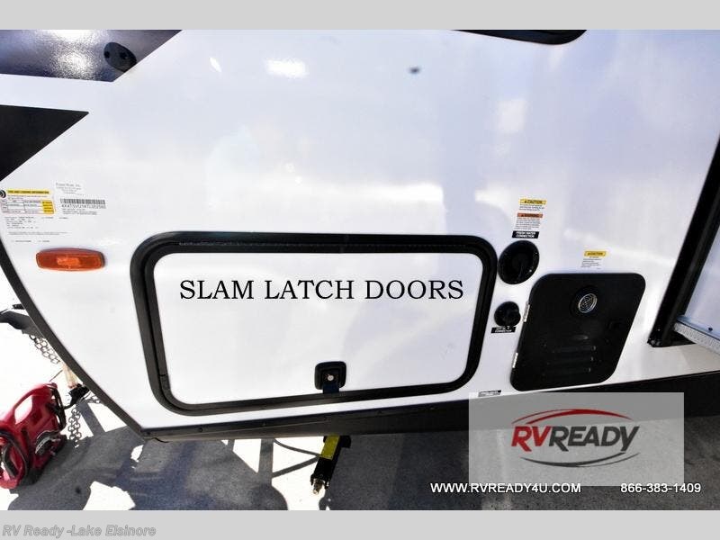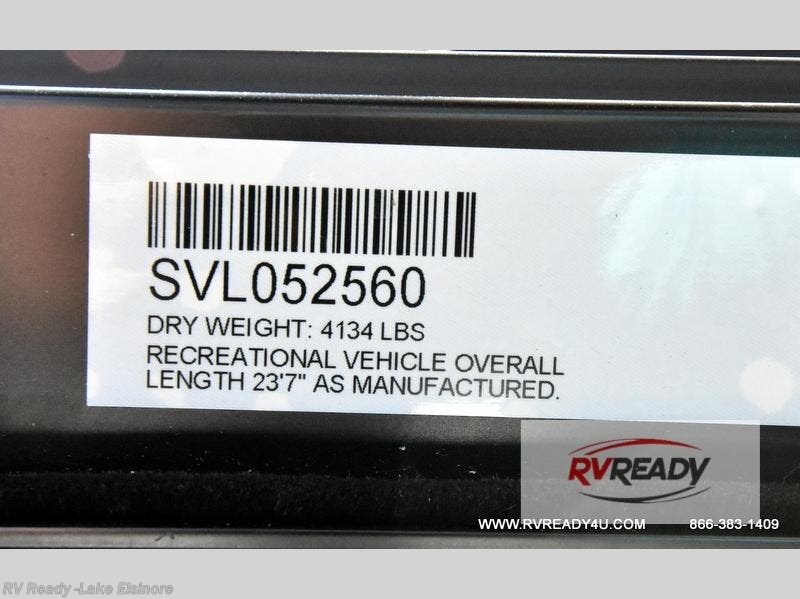 Bring along family or friends in this travel trailer that can sleep up to six people each night. The dinette slide will provide the chef space to cook on the two burner cooktop, or they may just head outdoors to cook on the outside kitchen. There is also an outdoor shelf here and a spray port for your convenience. The true queen-size bed up front is sure to provide a great night's rest, plus there is a "Stargazer" front window that will allow natural light in and beautiful starry nights.