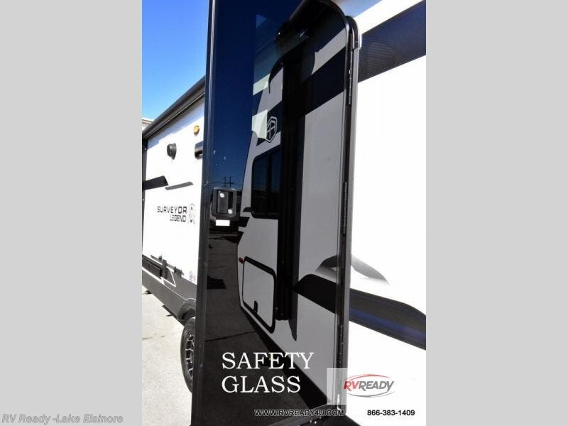 With any Surveyor Legend travel trailer by Forest River you will enjoy quality craftsmanship, convenient amenities, and at-home comforts. The Azdel composite walls provide a longer-lasting trailer, and the power tongue jack with a hitch light will get you back on the road in no-time. There are also Goodyear tires and a tire pressure monitoring system for hassle-free towing. Each model includes the Surveyor Legend Package that comes standard with oversized dinette storage access doors, front slam latch baggage doors, plus an automotive style tinted front windshield. You'll appreciate camping with a tankless water heater for endless hot showers, a 2" accessory hitch to bring bikes along, plus carpet-free interiors and a central vacuum system for easy clean up.