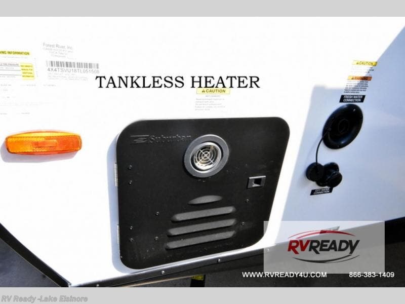 With any Surveyor Legend travel trailer by Forest River you will enjoy quality craftsmanship, convenient amenities, and at-home comforts. The Azdel composite walls provide a longer-lasting trailer, and the power tongue jack with a hitch light will get you back on the road in no-time. There are also Goodyear tires and a tire pressure monitoring system for hassle-free towing. Each model includes the Surveyor Legend Package that comes standard with oversized dinette storage access doors, front slam latch baggage doors, plus an automotive style tinted front windshield. You'll appreciate camping with a tankless water heater for endless hot showers, a 2" accessory hitch to bring bikes along, plus carpet-free interiors and a central vacuum system for easy clean up.