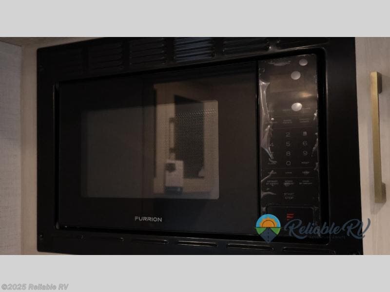 You'll love camping and spending time with loved ones in this spacious travel trailer. The 18' power awning with LED lights can be set up once you arrive at the campground, and you can unload camp gear from the pass-through storage. Head inside to make lunch on the residential range top or in the microwave oven. There is a booth dinette and tri-fold sofa for seating space, plus an additional counter with bar stools beside the dinette. A full bath onboard lets you clean up each day, and the front queen bed is sure to bring a great night's rest. There are also dual wardrobes to keep your space tidy and overhead storage for even more belongings.