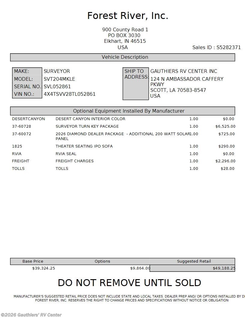 This model is in stock as a New Arrival from Forest River, ready for viewing and delivery. Stock number RGG52861 makes it easy to reference when contacting a dealer about this 2026 Surveyor Legend travel trailer.