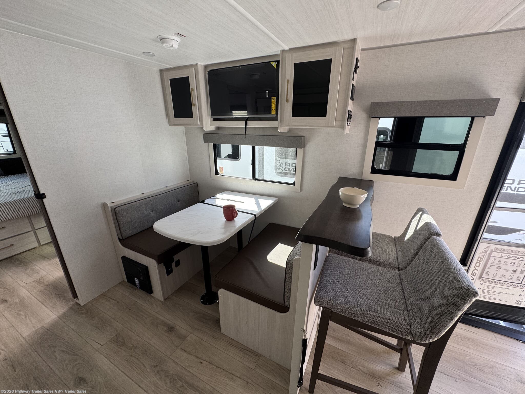 This 2026 Forest River Surveyor Legend 261RKLE is an RV the whole family will love. Be a part of the Forest River family with this 2026 Forest River Surveyor Legend 261RKLE. The sleep capacity allows you to bring up to 6 along on your travels in this rig. Setup is a breeze thanks to one roomy slide. Entertain or cook up a cozy meal just for you in this RV kitchen equipped with the fridge, oven, stove. Even more RV memories will be made as you spend quality time hanging out on the theater seatingwatching a movie on the TV.. Memories are made around the dinner table, and this dinette is where you’ll make them. You’ll wake up feeling well-rested for your adventures in your queen bed. Keep a comfortable temperature inside your rig with the heating option. The 40 gallon fresh water tank is just right for easy RV traveling. While the inside of this rig is enough on its own, the outside also features black tank flush, electric jack, exterior refrigerator, fiberglass sidewalls, front fiberglass cap w/window, griddle, heated underbelly, hitch, ladder, outside kitchen, pass thru storage, power awning, roof vent, screen door, skylight, slam latch baggage doors, slideout, spare tire kit, stabilizer jacks, tinted windows and upgraded insulation package. The outside kitchen allows you to enjoy the Great Outdoors at meal time. Store all the gear you need for your travels with the spacious pass-through storage underneath.