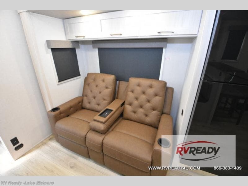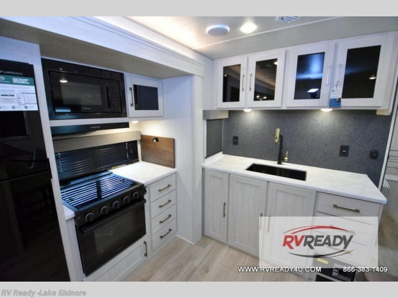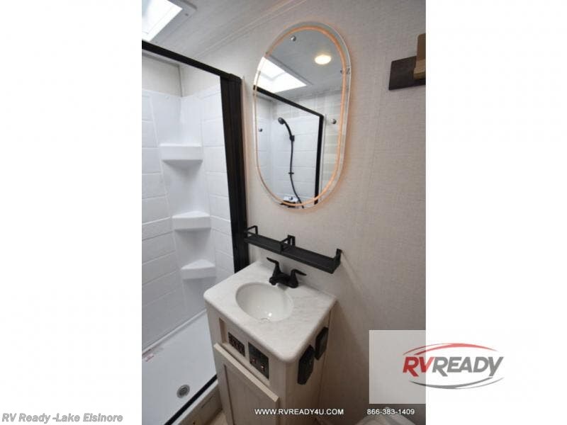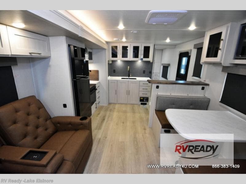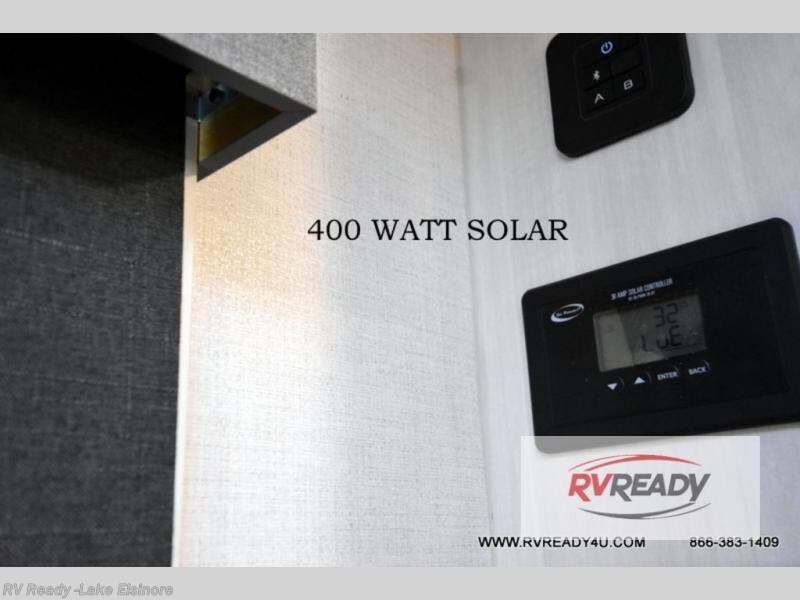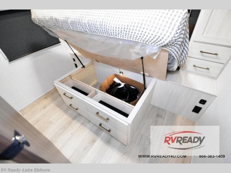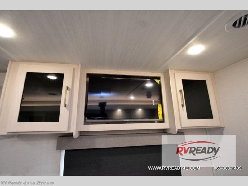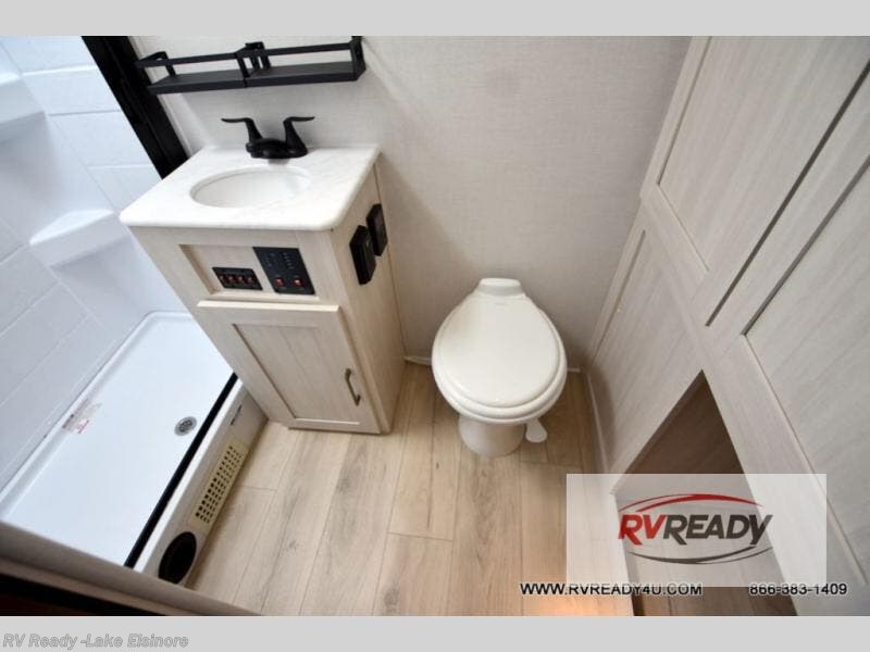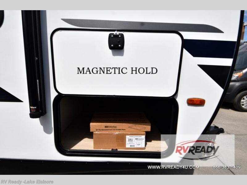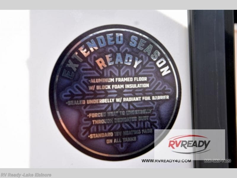 Fun at the campground begins in this spacious travel trailer for five to six! You will enjoy having your own front private bedroom with a queen bed, while your guests sleep on the EZ-out sofa and booth dinette in the main living area. Breakfast can be made in the full kitchen on the residential range or outside on the exterior kitchen. There is ample storage space throughout this model, including dual bedroom wardrobes, overhead cabinets, a bath linen closet, and a walk-in pantry.
